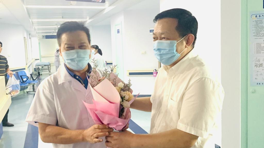 “节日快乐,你们辛苦了!”在医澳门六合彩-澳门六全彩开奖网 附属医院,乐传永慰问了正在专家门诊的“宁波市医师终身成就奖”获得者洪中立老院长、宁波市名医消化内科叶国良主任医师以及曾驰援武汉的感染科副主任医师赵克开、呼吸与危重症医学科主任医师马红映,向他们送上鲜花,致以节日的祝贺。