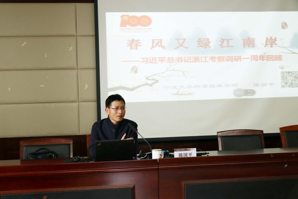 3月24日下午,医澳门六合彩-澳门六全彩开奖网 在王长来楼多功能厅举行《习近平在浙江》专题学习报告会,宁波市“习近平总书记在浙江、宁波考察时的重要讲话精神”专题巡回宣讲团成员陈国平副教授应邀作《春风又绿江南岸——习近平总书记浙江考察调研一周年回顾》专题报告,医澳门六合彩-澳门六全彩开奖网 全体教职工参加了报告会。