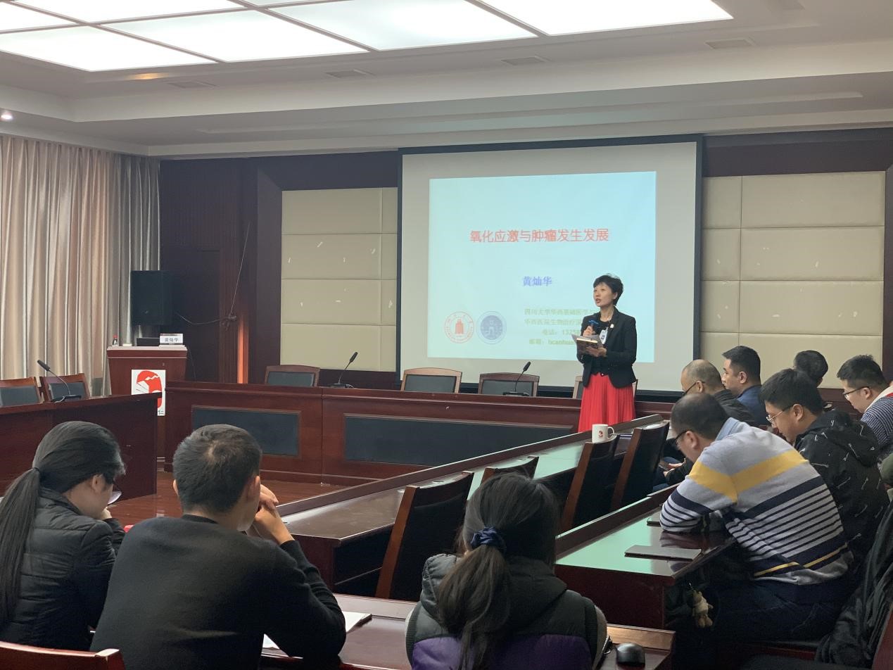 黄灿华教授就氧化应激的产生及其与肿瘤的发生发展,病毒感染与肿瘤发生,抗氧化调变与肿瘤治疗进行了讲解,澳门六合彩-澳门六全彩开奖网 步世忠教授、崔巍博士,王福艳博士、习阳博士等针对讲座内容与黄教授进行讨论。