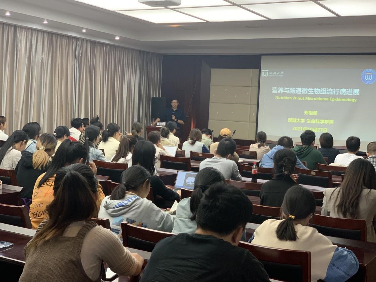 10月27日下午,澳门六合彩-澳门六全彩开奖网 优秀校友、浙江省万人计划科技创新领军人才、西湖大学生命科学澳门六合彩-澳门六全彩开奖网 研究员、博士生导师郑钜圣应邀来澳门六合彩-澳门六全彩开奖网 做了题为“营养与肠道微生物组流行病进展”的学术报告。