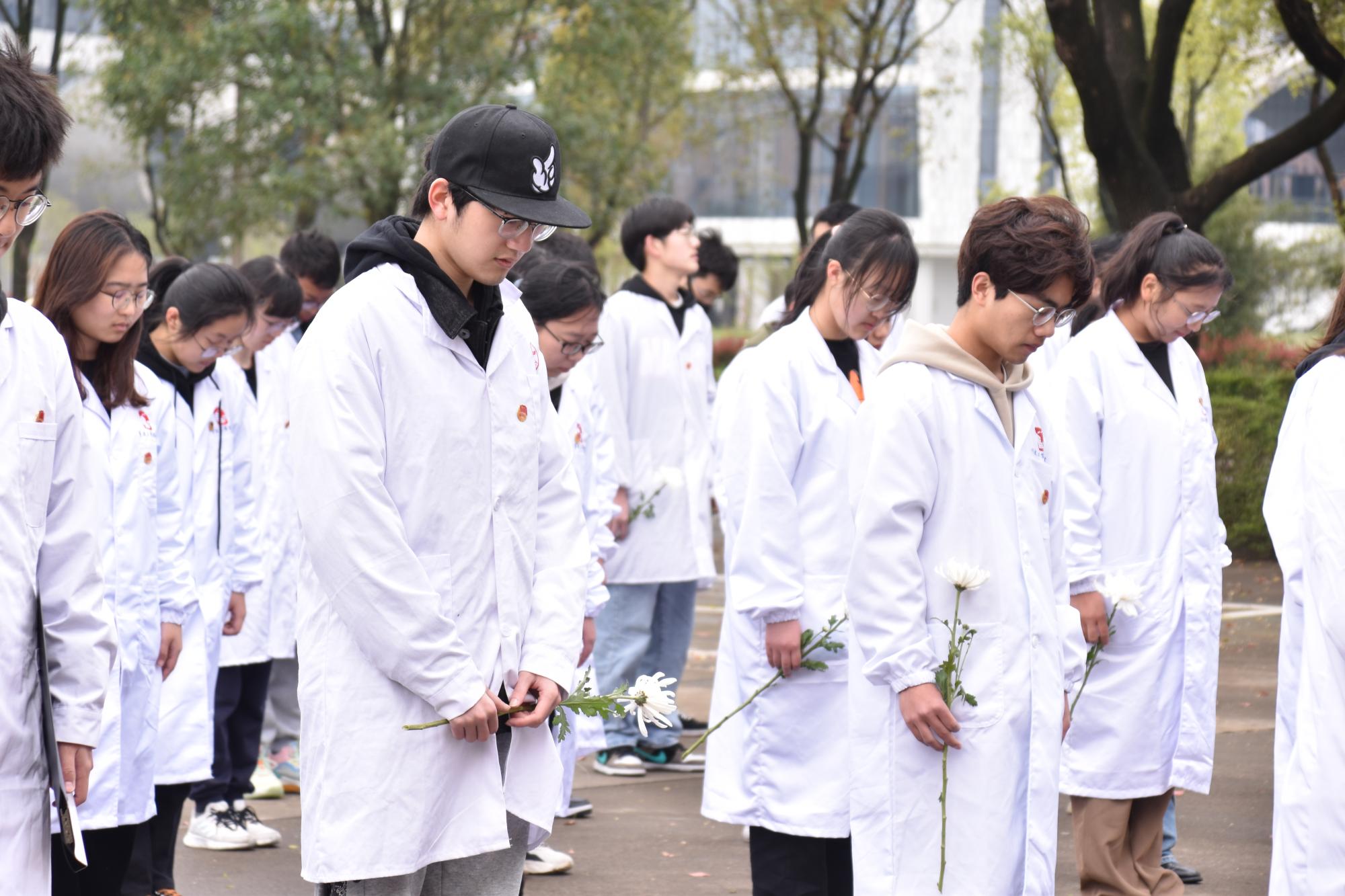 最后,全体党员一起默哀,同学们在这样的氛围中默默表达自己对遗体捐献者深深的尊敬,同时也提升了党员同志们的生命意识、加强了感恩教育。