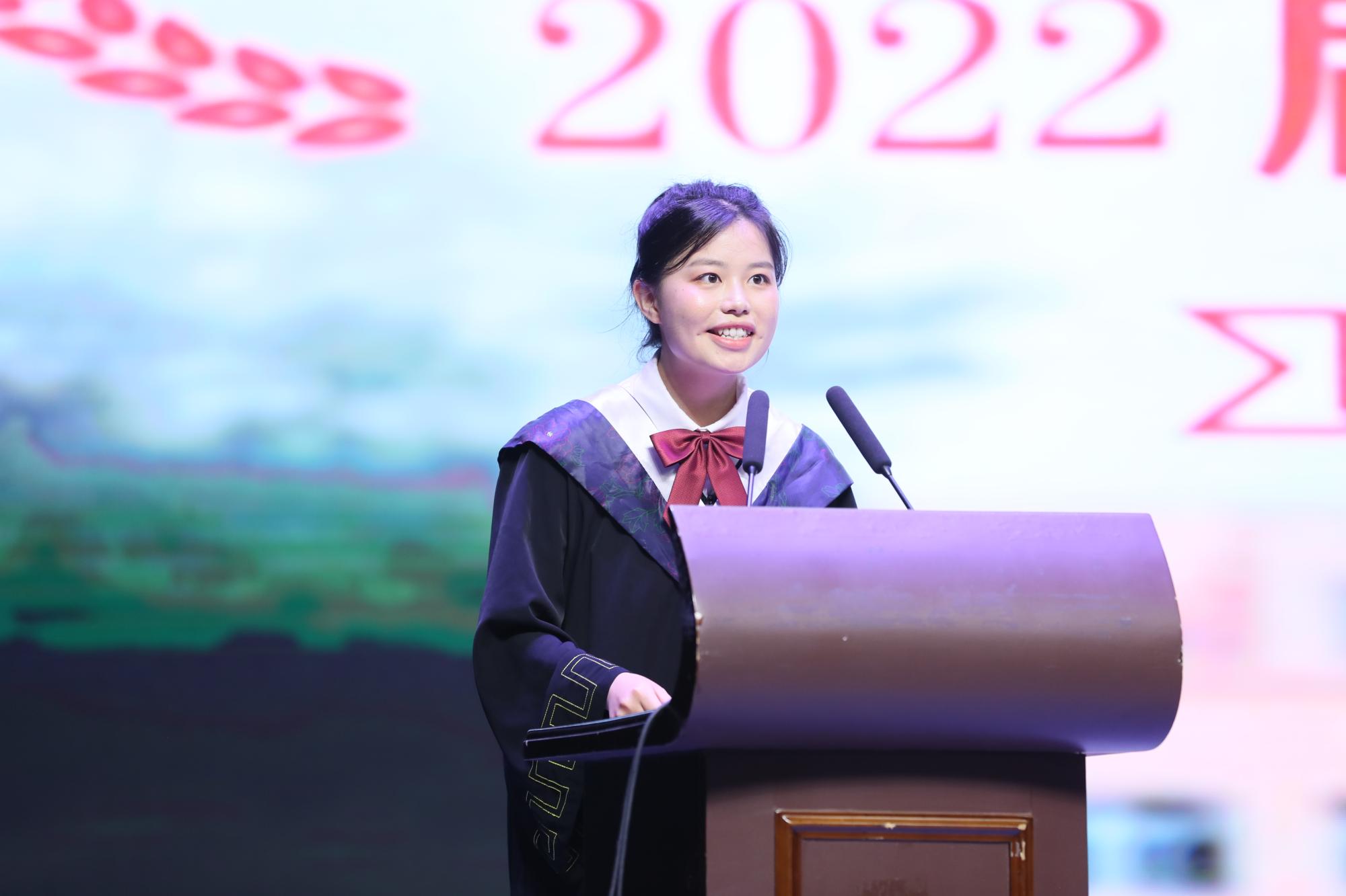 研究生严嘉宁、本科生胡景岑分别代表全体研究生、本科生发言。他们满怀深情地表达了对澳门六合彩-澳门六全彩开奖网 、澳门六合彩-澳门六全彩开奖网 的感恩之情,并分享了自己在求学生涯中的酸甜苦辣,收获时不露圭角,失去时不惧回声,奋力拼搏的他们用实际行动树立了前进的榜样。