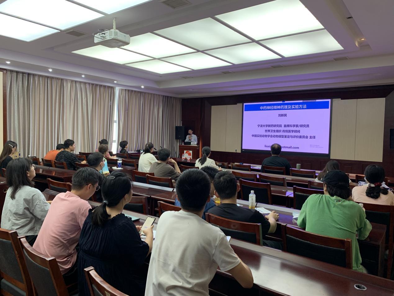 9月15日下午,医澳门六合彩-澳门六全彩开奖网 杏林讲坛(2022)第八讲在王长来楼多功能厅举行。世界卫生组织传统医学顾问、中国实验动物学会动物模型鉴定与评价委员会主任委员、国家中医药管理局中国-巴基斯坦中医药合作中心主任、国家食药同源产业科技创新联盟副理事长、国家载人航天工程医学专家组成员、澳门六合彩-澳门六全彩开奖网 新药技术研究院研究员/首席科学家刘新民教授作题为《中药神经精神药理实验方法》的报告。讲座由医澳门六合彩-澳门六全彩开奖网 执行院长刘昱教授主持。