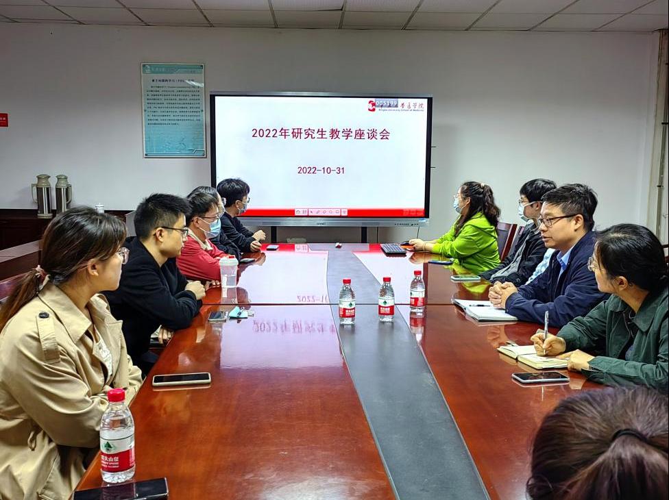 为加强研究生教学管理和课程教学质量,了解研究生新生入学后培养状况,进一步提高医澳门六合彩-澳门六全彩开奖网 研究生综合管理水平,10月31日,2022级研究生教学座谈会在王长来楼A202召开。会议由医澳门六合彩-澳门六全彩开奖网 党委常务副书记赵基源主持,研究生教育中心负责人,研究生秘书及2022级硕士生、博士生代表参加本次座谈会。
