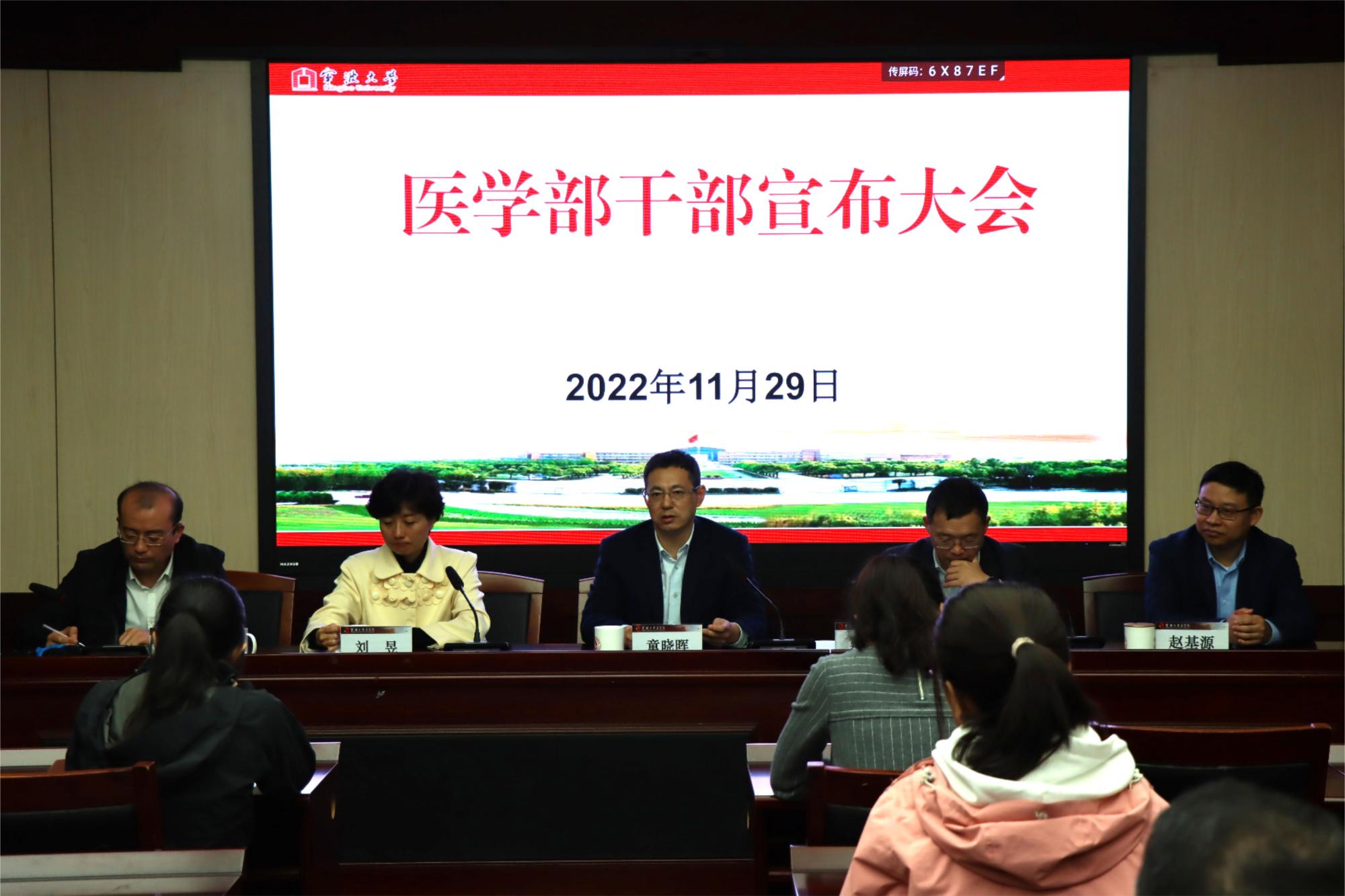 11月29日下午,校党委副书记童晓晖、校党委委员、组织部部长来医学部宣布干部任命。医学部新任党委常务副书记王钱永、医学部全体教职工参加了会议。