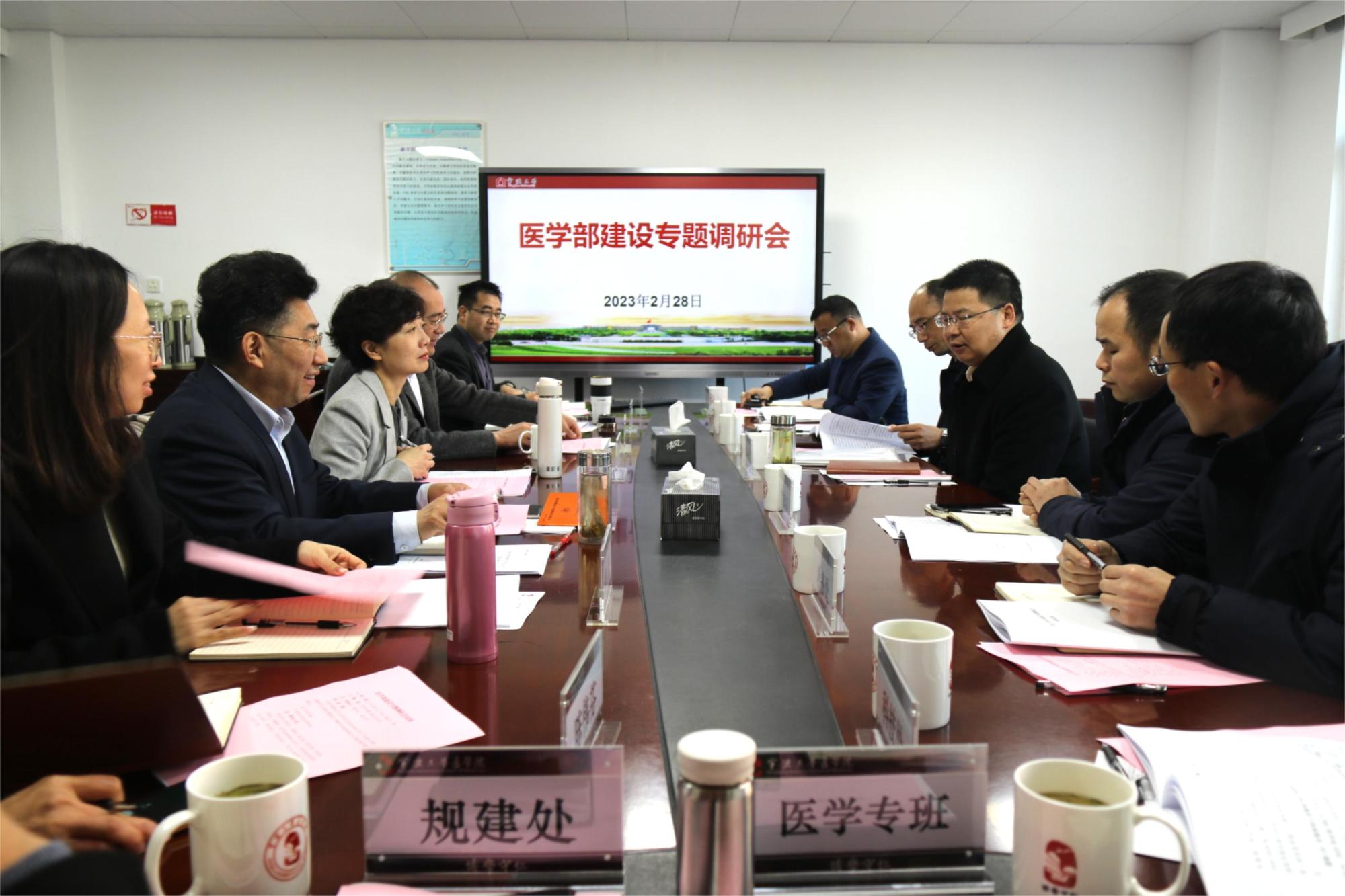2月28日上午,副校长赵全军率党(校)办、发规处、教务处、研究生院、科技处、人事处、规建处、医学专班相关负责人到医学部专题调研医学部建设工作。医学部全体党政班子成员,党委委员,下设澳门六合彩-澳门六全彩开奖网 和平台管理中心、实验动物中心负责人等参加了调研会。