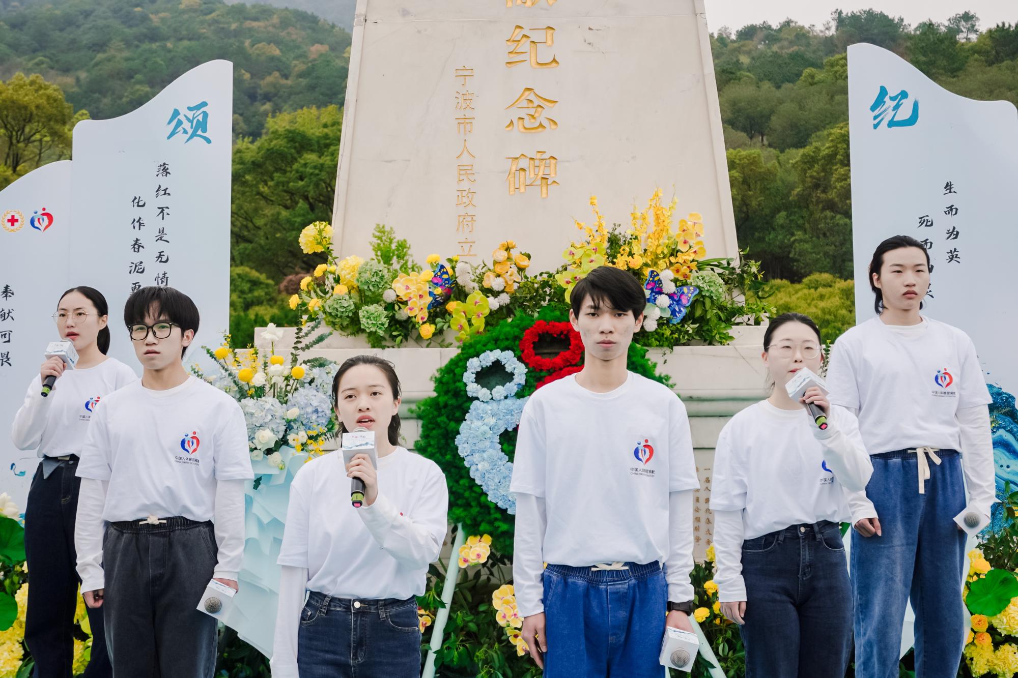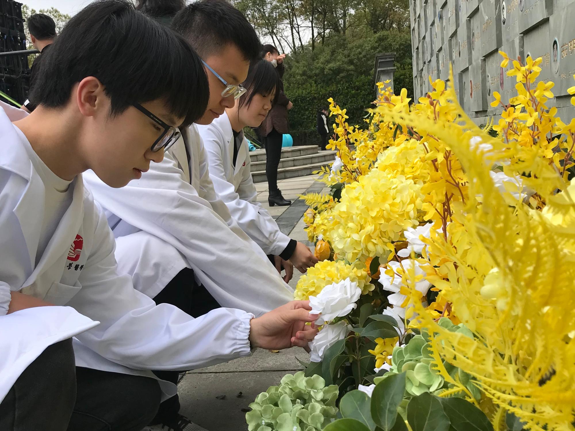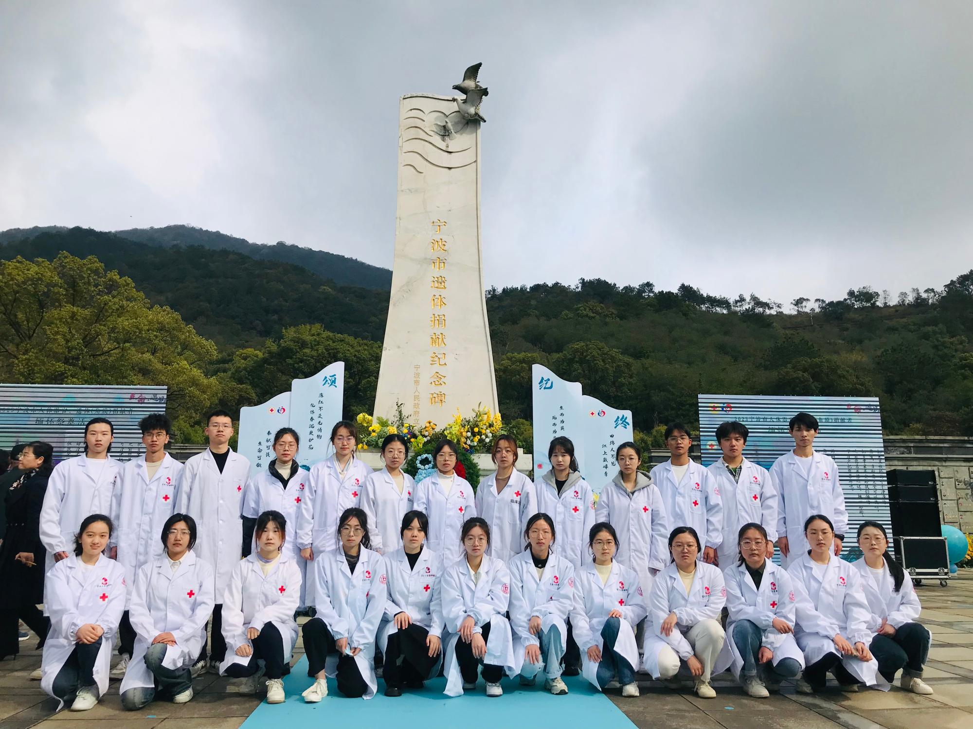 为缅怀祭奠宁波市人体器官、遗体(角膜)捐献者,3月23日,宁波市红十字会在宁波市遗体捐献纪念陵园举行缅怀纪念活动,医学部师生身着白大褂、手执菊花,齐聚纪念陵园,缅怀致敬器官和遗体捐献者。