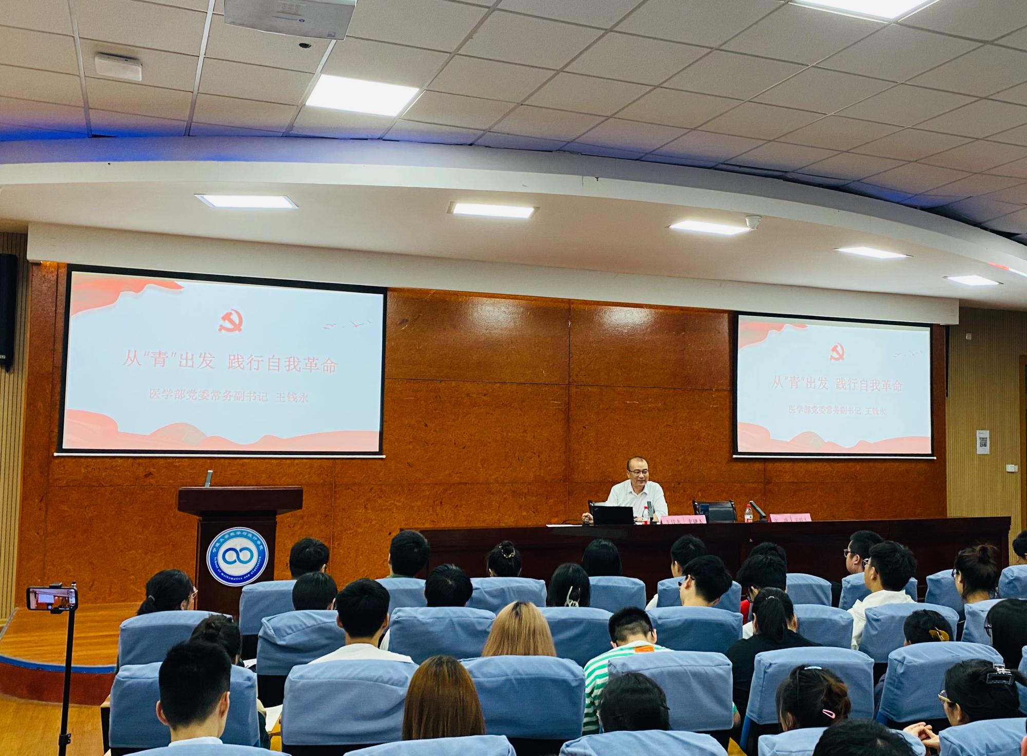 开班仪式结束后,医学部党委常务副书记王钱永进行了《从“青”出发,践行自我革命》的主题讲座。王书记围绕“自我革命是党永葆生机活力的力量源泉”、“全面从严治党开辟了百年大党自我革命的新境界”以及“新时代青年学子如何践行自我革命精神”三方面阐述了党的自我革命,并通过医学部校友的先进个人事迹激励学员们要不断提升理论素养,牢牢站稳人民立场,积极投身社会实践。