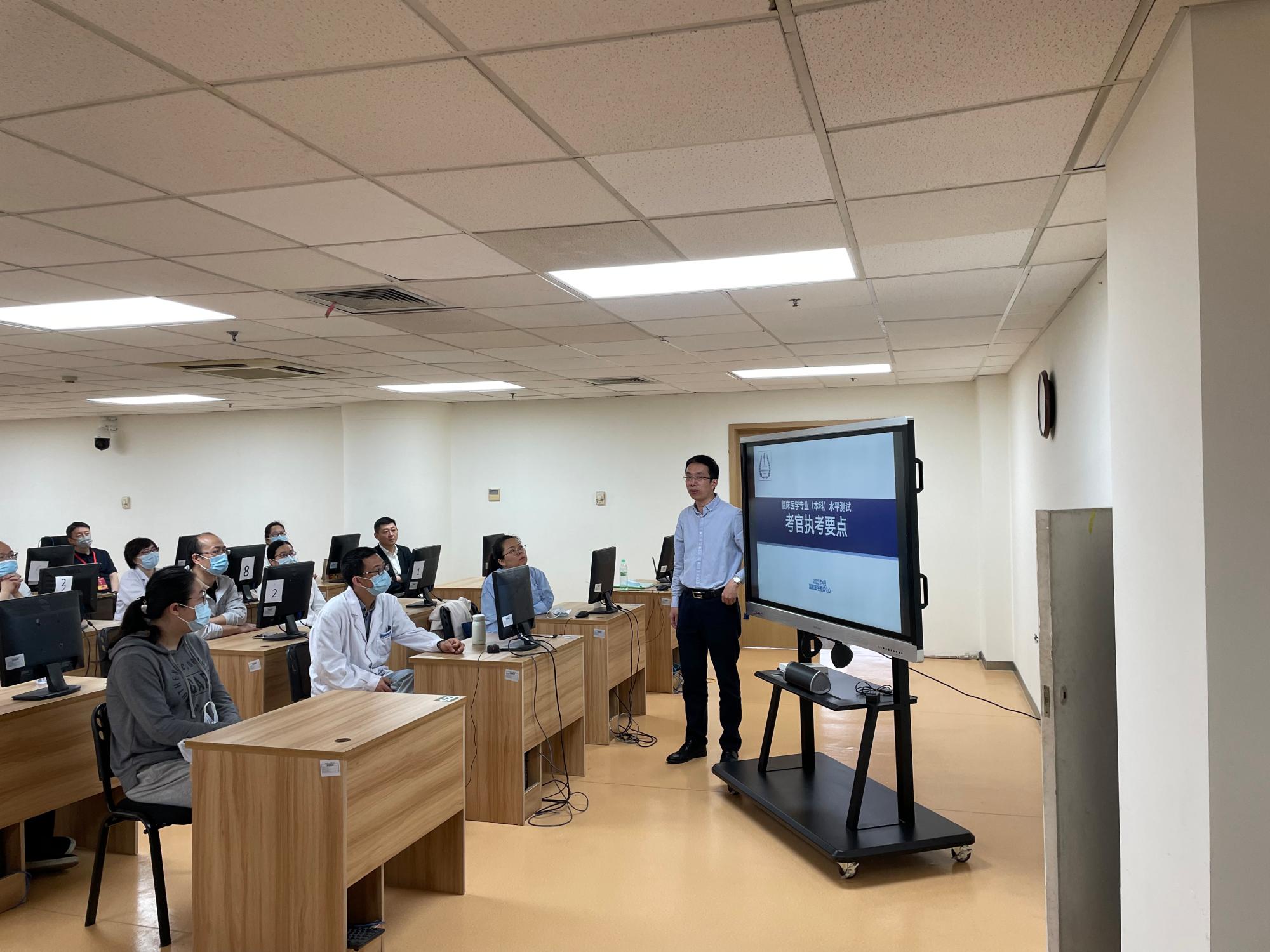 本次考试分为理论和技能两部分。理论考试采用机考试的方式,主要考察医学基本理论知识,内容涵盖基础医学、医学人文、预防医学和临床医学四个方面。技能考试在澳门六合彩-澳门六全彩开奖网 附属第一医院临床技能中心进行,主要考查学生的病史采集、体格检查和基本操作技能,同时对沟通交流能力与人文关怀进行评价。技能考试的74名考官分别来自澳门六合彩-澳门六全彩开奖网 附属第一医院、澳门六合彩-澳门六全彩开奖网 附属李惠利医院、澳门六合彩-澳门六全彩开奖网 附属人民医院和澳门六合彩-澳门六全彩开奖网 医澳门六合彩-澳门六全彩开奖网 附属宁波市泌尿肾病医院。