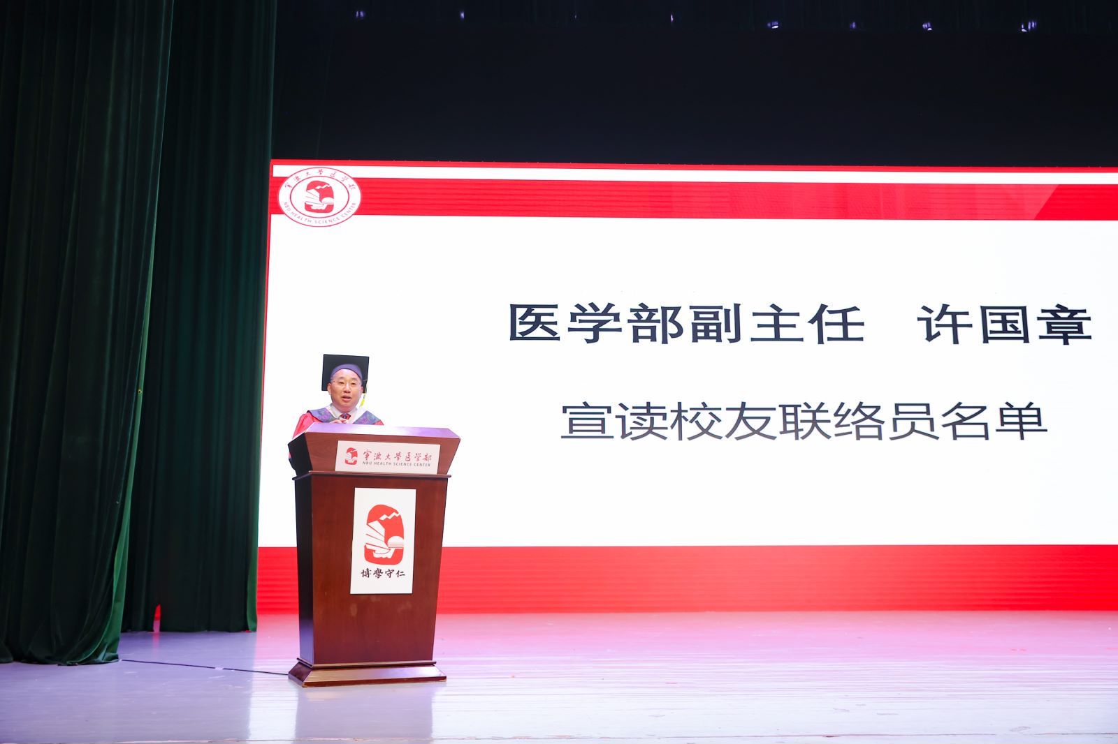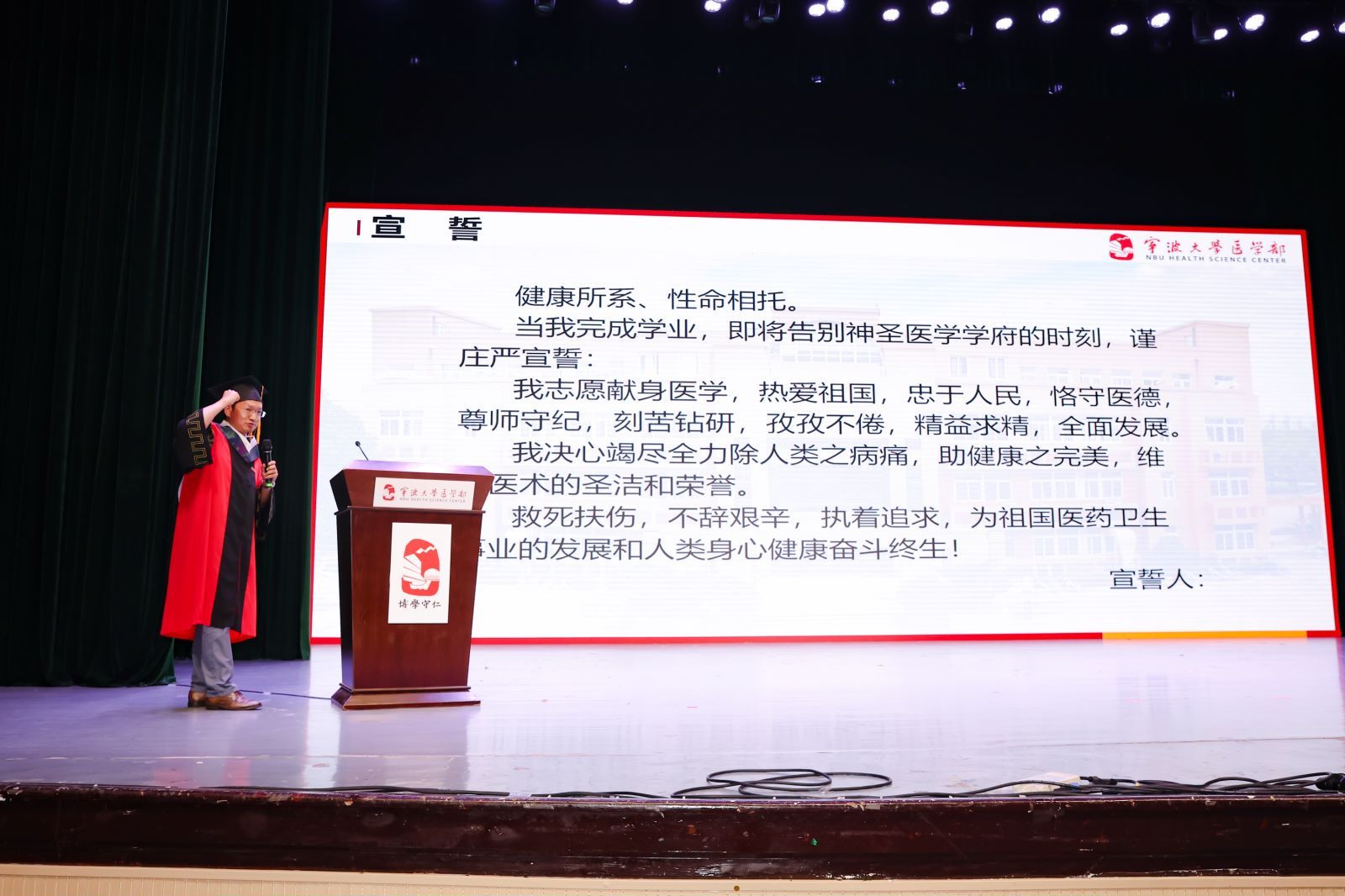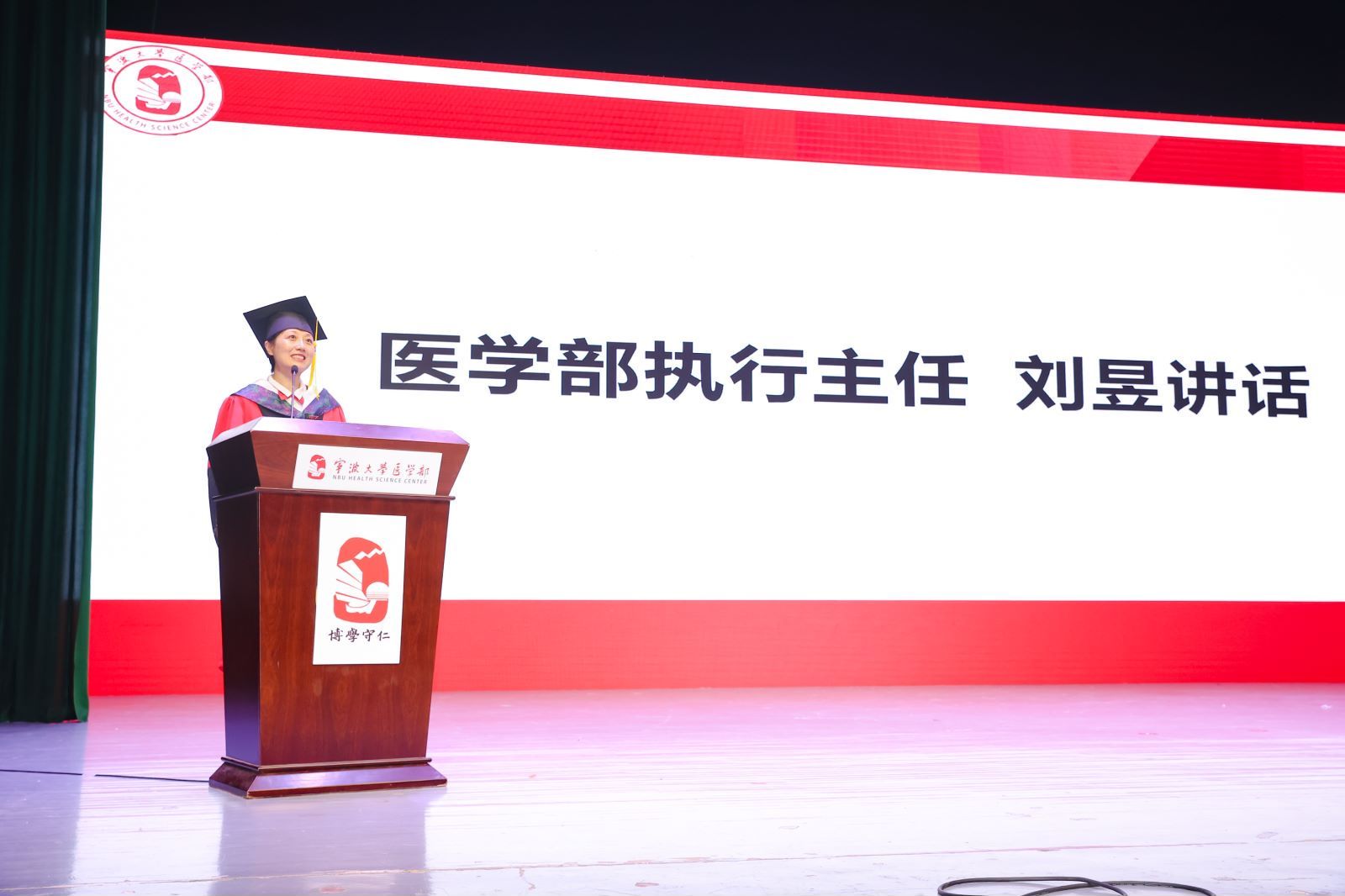 仪式上,医学部执行主任刘昱寄语同学们在面对人生低谷时,学会倾诉,学会释放,坦然拥抱生活的不确定性,并鼓励全体毕业生“做一个培育惊喜的人”。教师代表分享了自己在医学部的执教经历,表达了对学生的深情关爱与美好祝愿。毕业生代表回首了在宁大医学部的成长蜕变,表达了对母校母院的感恩之情。