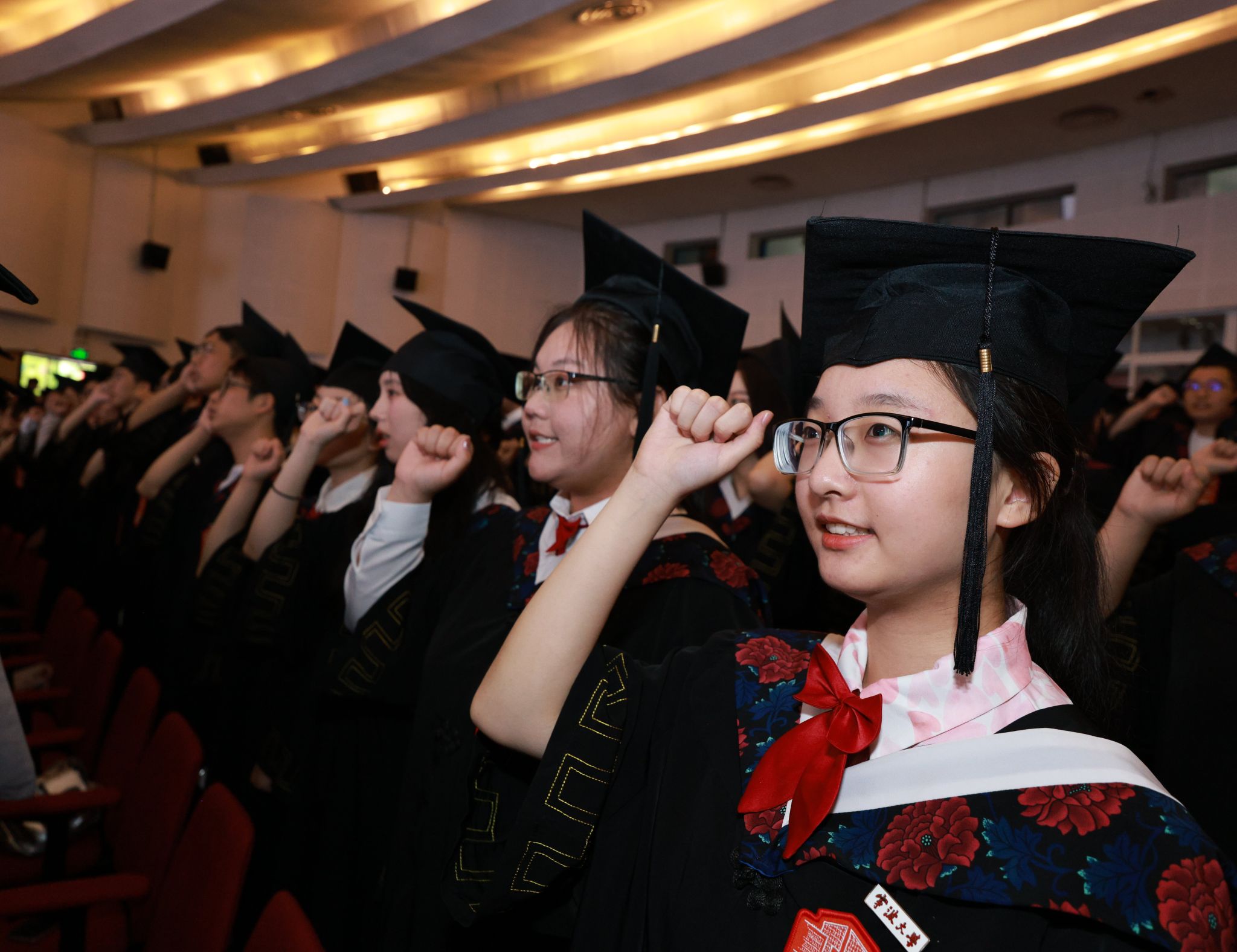 在毕业生宣誓仪式上,附属康宁医院党委书记周文华受邀为全体毕业生上最后一堂廉洁从业教育思政课,向全体毕业生发出廉洁从业倡议,叮嘱同学们系好白大衣的第一粒扣子,守好廉洁底线红线。在医学生誓言宣誓环节,在澳门六合彩-澳门六全彩开奖网 附属人民医院张逸医生的领誓下,全体毕业生高举右拳,庄严重温医学生誓词,立志恪守医德、救死扶伤,永远不辱使命、不负重托。声声口号响彻礼堂,铮铮誓言砥砺初心。