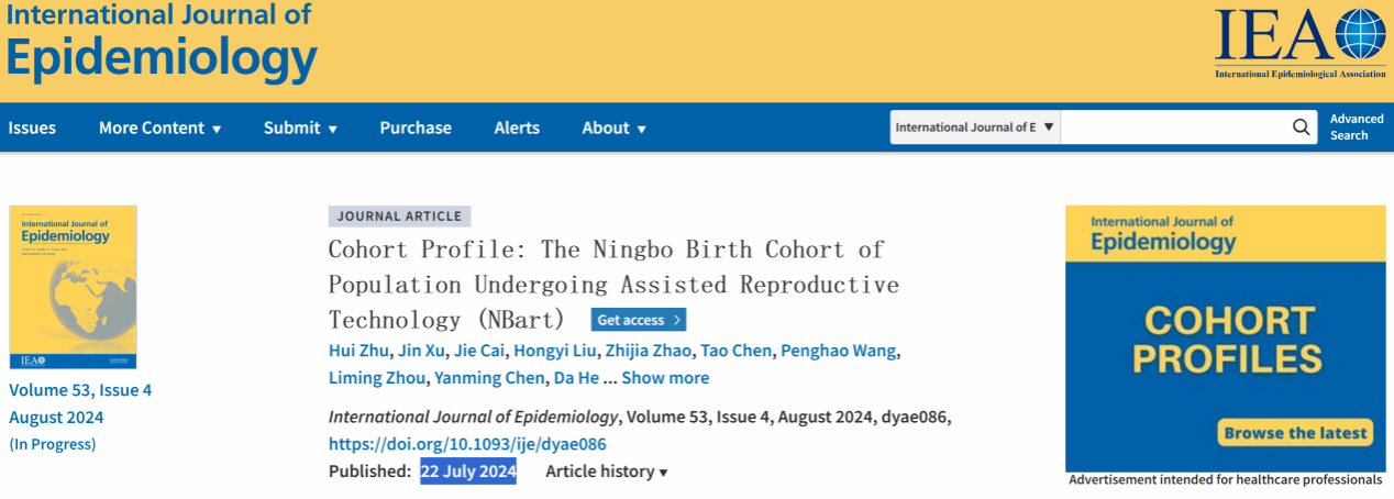 7月,医学部2021级内科学博士研究生朱汇以第一作者在《International Journal of Epidemiology(国际流行病学杂志)》(中科院一区TOP期刊)发表了题为《Cohort Profile: The Ningbo Birth Cohort of Population Undergoing Assisted Reproductive Technology (NBart)(队列概况:宁波辅助生殖人群出生队列)》的研究论文。该论文全面介绍了浙江省首个辅助生殖出生队列的建设方案,反映了近年来澳门六合彩-澳门六全彩开奖网 医学部在引领前瞻性出生队列建设、致力生命科学研究的重要成果体现。医学部季林丹教授为本文通讯作者,该研究得到了浙江省自然科学基金、宁波市青年科技创新领军人才项目的支持。