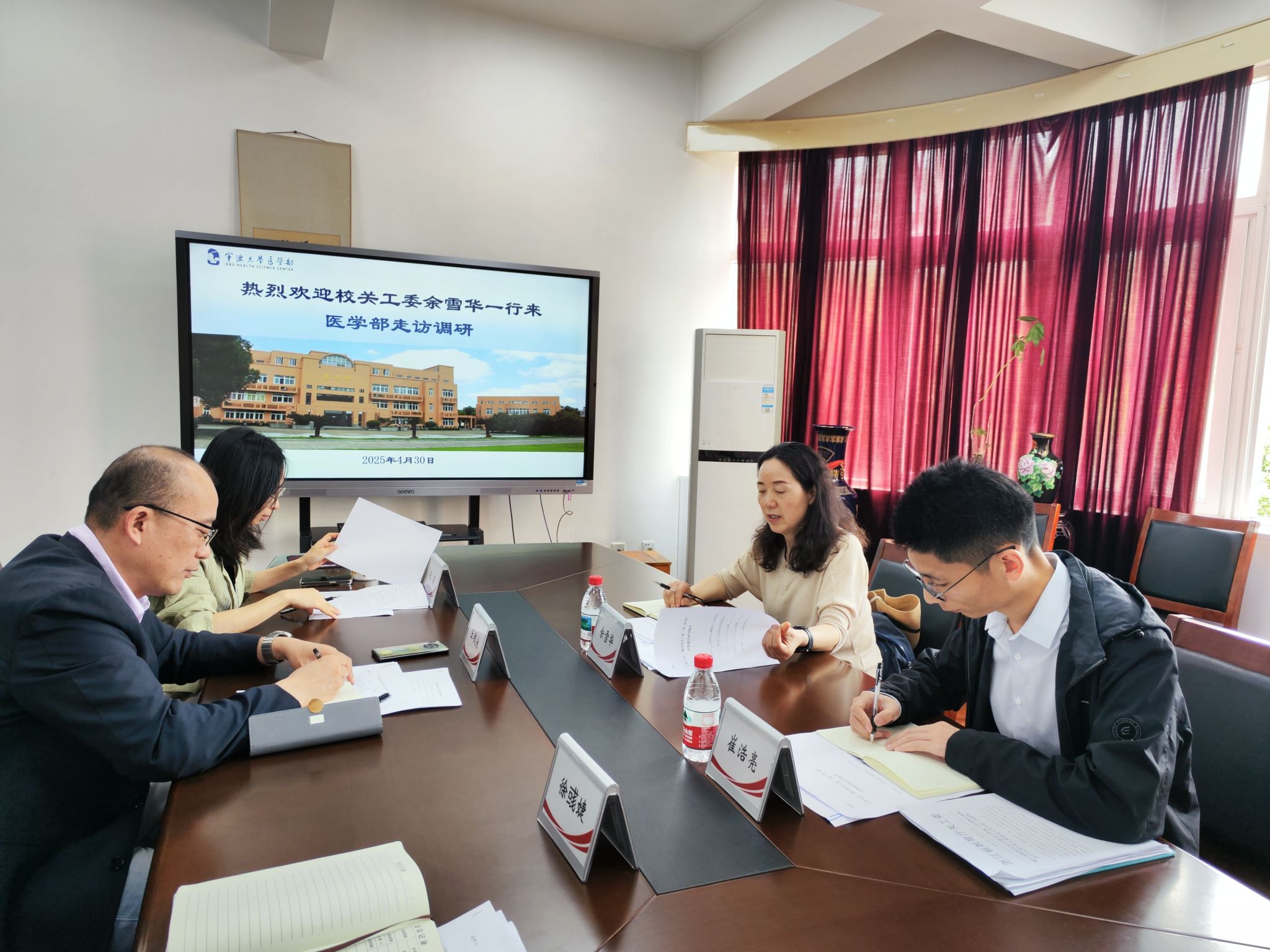 为深入推进“五好关工委”建设目标,4月30日上午,校关工委副主任余雪华一行来医学部开展专题调研,对标“五好”关工委建设方案,重点考察医学部关工委工作成效及“一院一品”特色品牌建设进展。医学部党委常务副书记王钱永、党委副书记张薇参加调研会并作专题汇报。