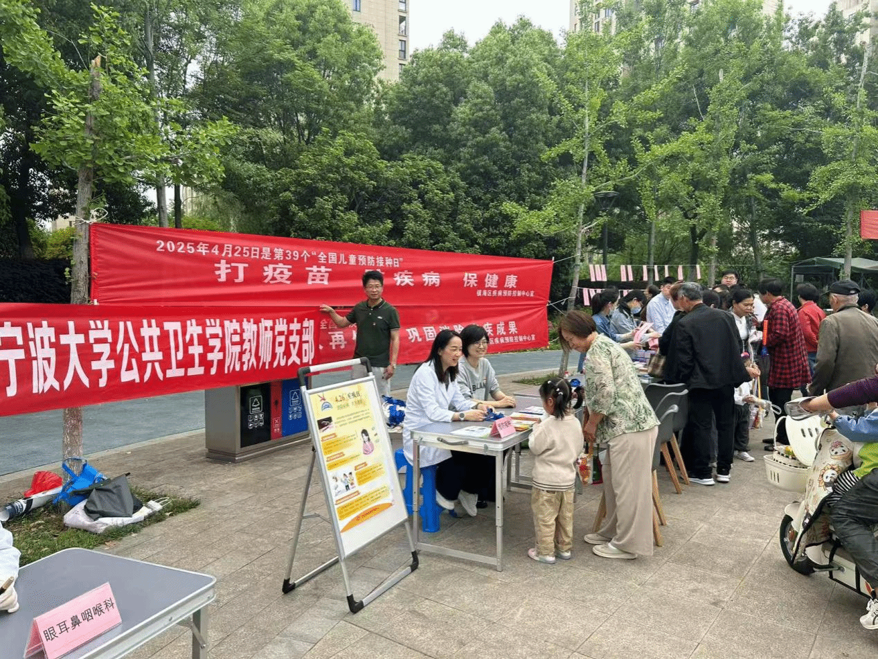 今年的4月25日是第39个“全国儿童预防接种日”,为积极响应健康中国战略号召,筑牢儿童健康防护网,公共卫生澳门六合彩-澳门六全彩开奖网 教师党支部、携手镇海区疾病预防控制中心、镇海区骆驼街道社区卫生服务中心,在镇海区骆驼公园广场开展了“打疫苗 防疾病 保健康”主题宣传活动。
