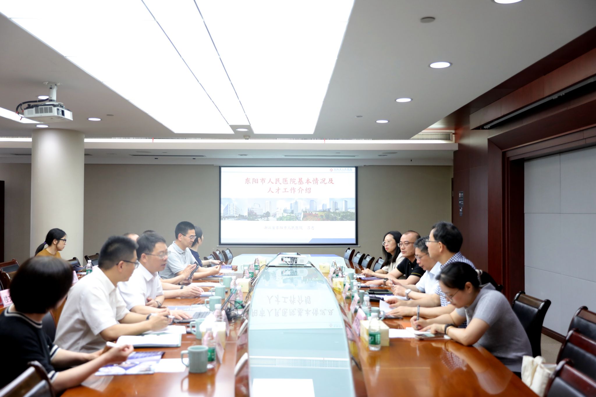 23日上午,调研组赶赴东阳市人民医院开展调研座谈。东阳市卫健局党委书记楼杰华,市委组织部副部长、人社局党组书记王晖,东阳市人民医院党委书记吕忠,院长陈翔,副院长王维凯、应满珍接待了调研组。在座谈会上,吕书记详细从发展背景、人才需求、学科建设及未来规划介绍了医院的整体情况。双方围绕毕业生实习就业、人才联合培养、科研合作等议题展开深入探讨,就建立长期稳定的合作关系达成共识。随后双方还开展了校友座谈环节,5位校友代表分享了自身在医院的成长经历与职业发展路径,表达了对母校培养的感恩之情,同时也对在校的学弟学妹们发出诚挚邀约。