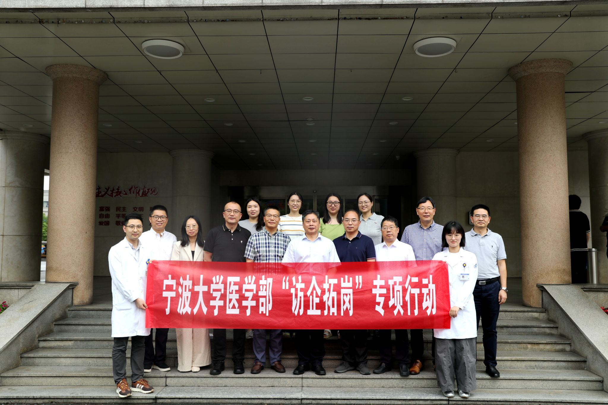 5月22日-23日,校党委副书记张真柱带队赴嵊州市和东阳市开展访县拓岗促就业专项行动,医学部党委常务副书记王钱永陪同调研。