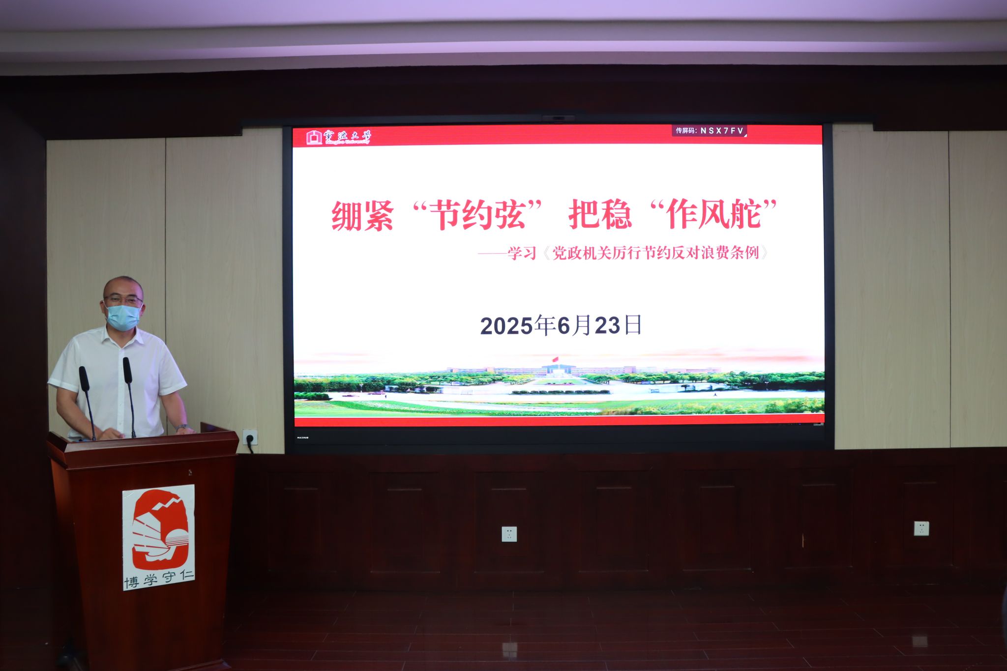 6月23日,医学部组织全体教师开展《党政机关厉行节约反对浪费条例》专题学习,党委常务副书记王钱永以《绷紧“节约弦”,把稳“作风舵”》为题讲授党课。