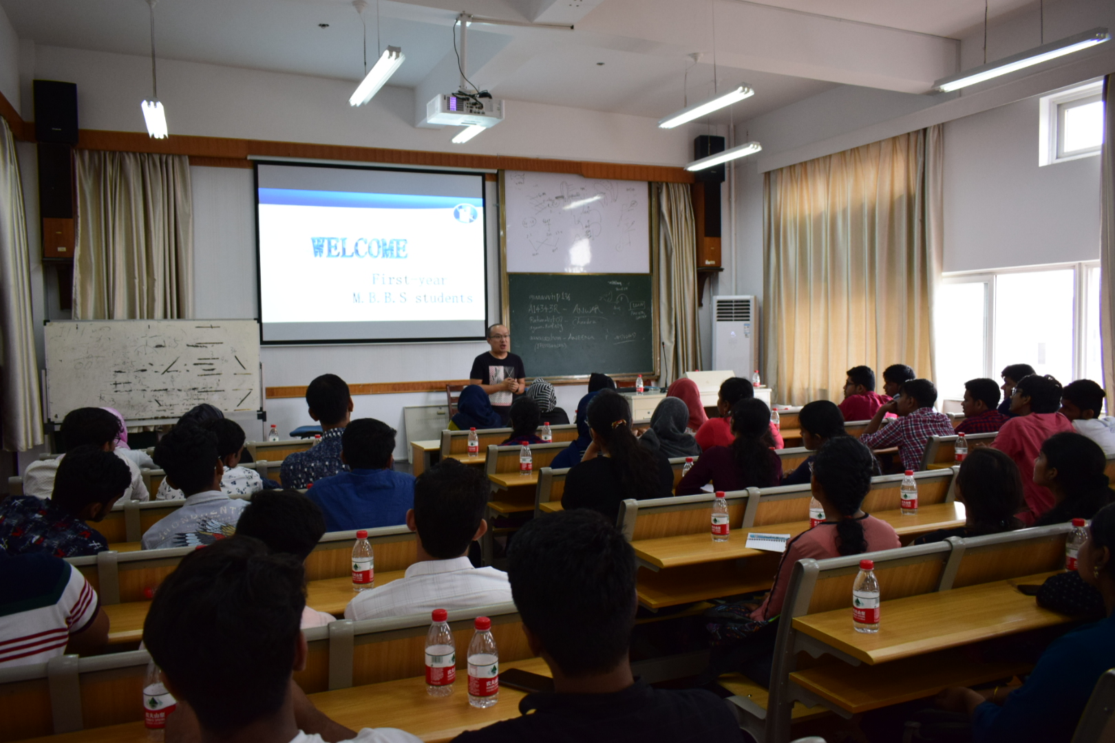 为使留学生新生尽早融入校园,熟悉生活学习环境,医澳门六合彩-澳门六全彩开奖网 组织学生会留学生部和留学生会成员们紧锣密鼓地筹备近一个月的时间,帮助怀揣着梦想的新生们做好在医澳门六合彩-澳门六全彩开奖网 奋斗6年的准备。大家精心设计,同心协力,展开了一系列迎新活动,包括注册入住、游览校园、新老生见面会及新生第一课等活动。