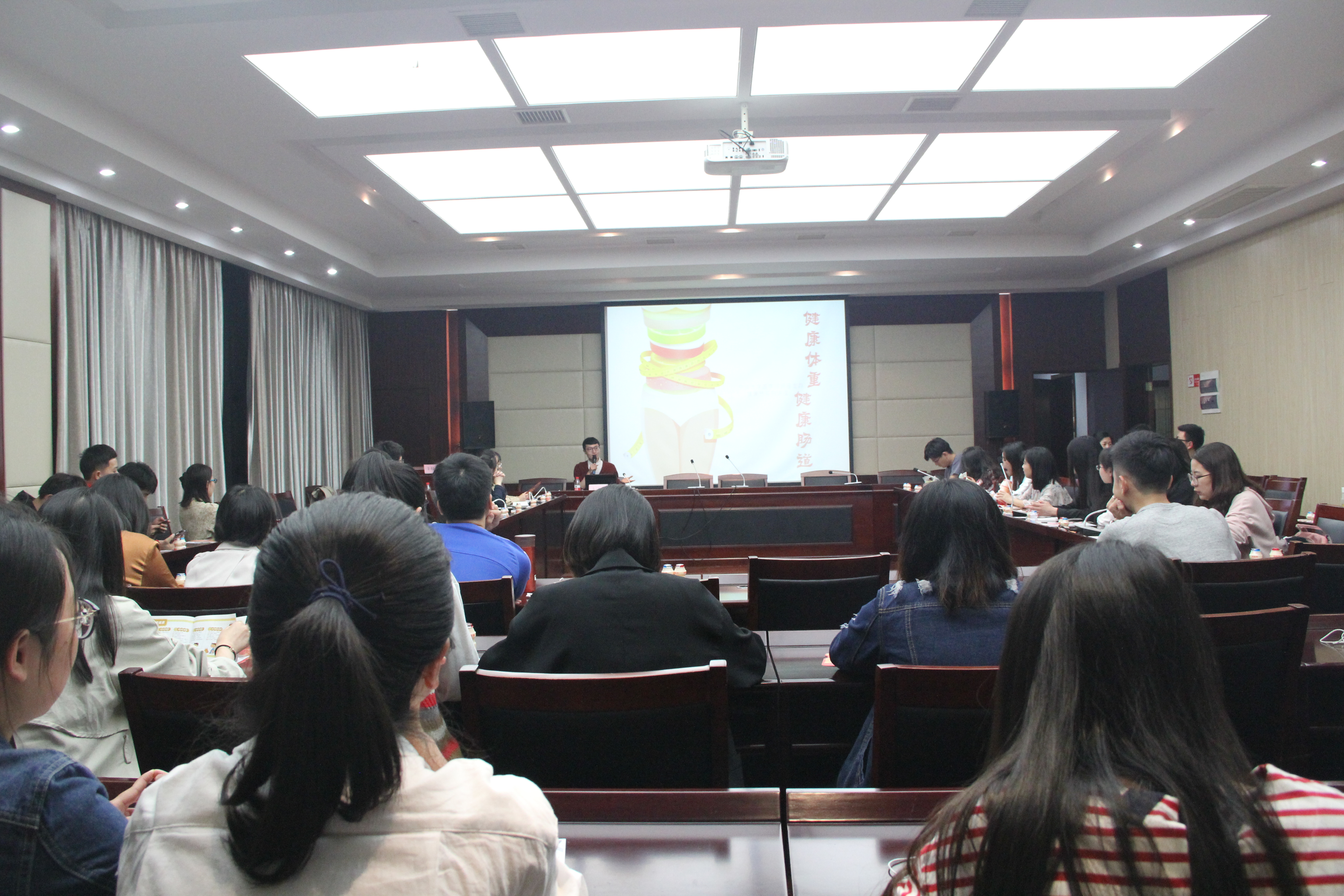 4月10日,医澳门六合彩-澳门六全彩开奖网 研究生委员会承办的澳门六合彩-澳门六全彩开奖网 第九届健康节系列讲座在王长来二楼报告厅举行。本次讲座以“健康体重,健康肠道”为主题,由医澳门六合彩-澳门六全彩开奖网 营养与食品卫生学专业张晓宏教授及其所带团队为大家讲解科学控制肥胖,膳食调节体重的相关知识。