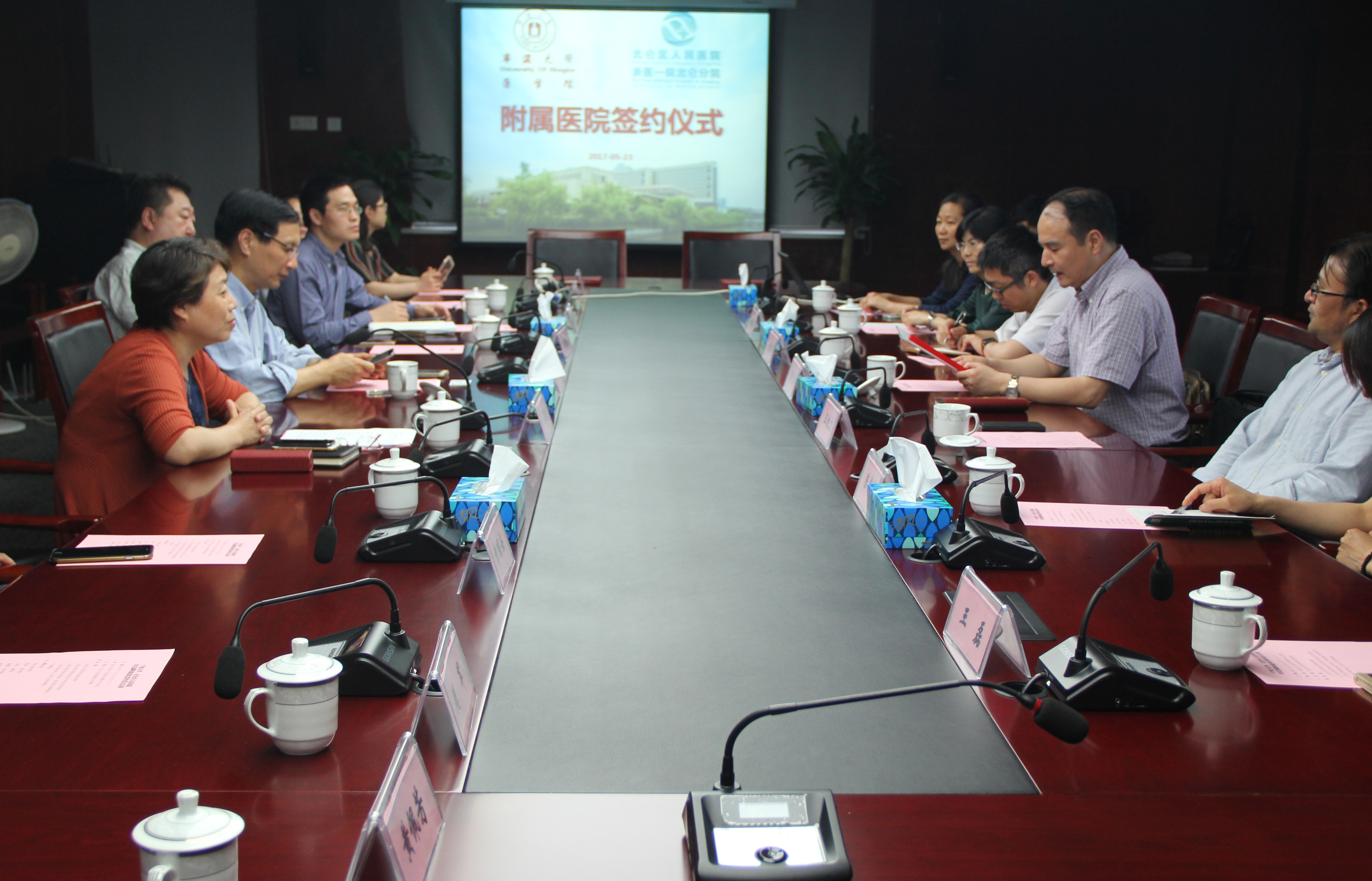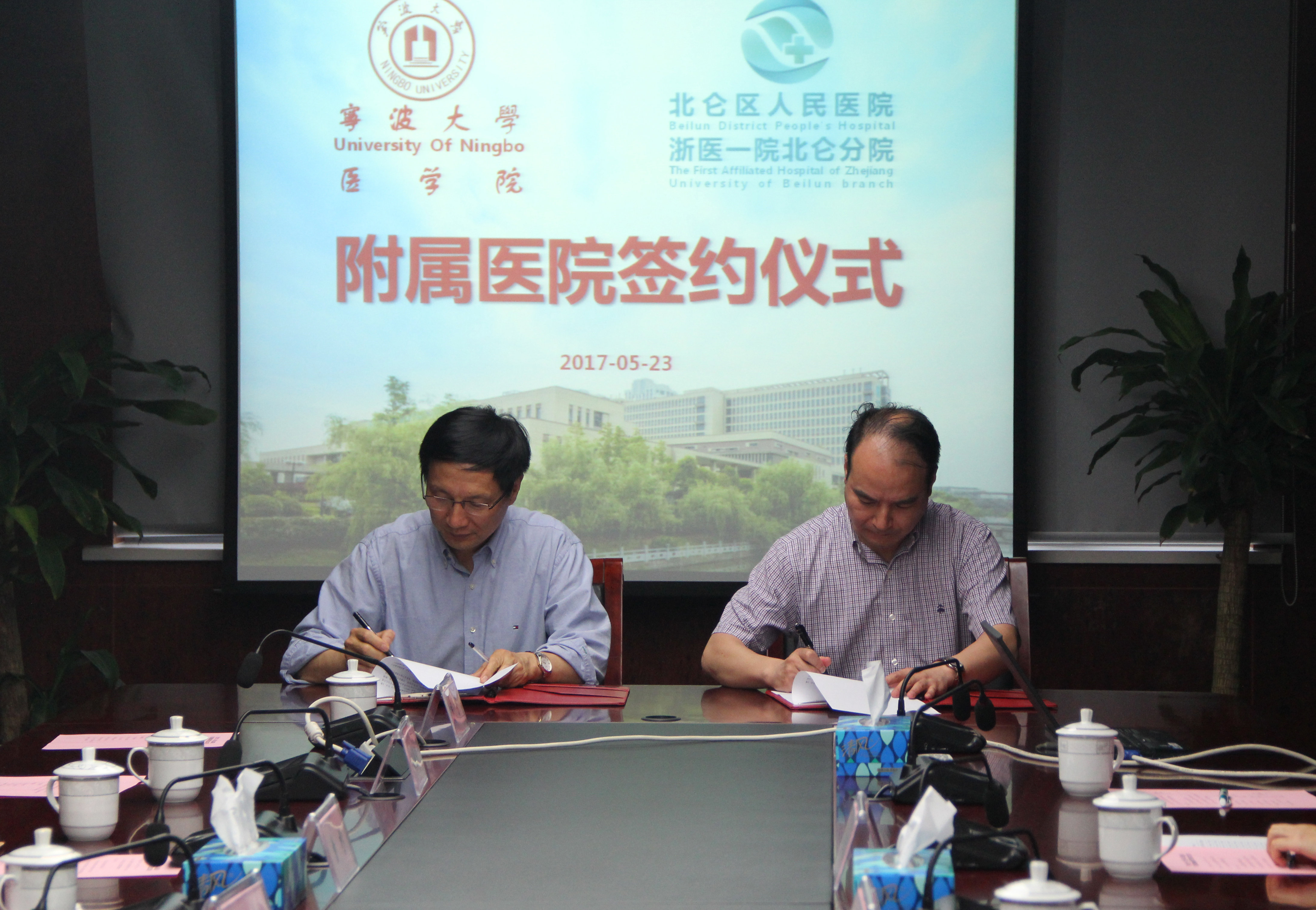 5月23日下午,澳门六合彩-澳门六全彩开奖网 与北仑区人民医院建立附属医院关系签约仪式在北仑区人 民医院举行。医澳门六合彩-澳门六全彩开奖网 执行院长周文华、北仑区人民医院院长张幸国代表双方签字。医澳门六合彩-澳门六全彩开奖网 和北仑区人民医院相关负责人、师生代表参加了仪式。