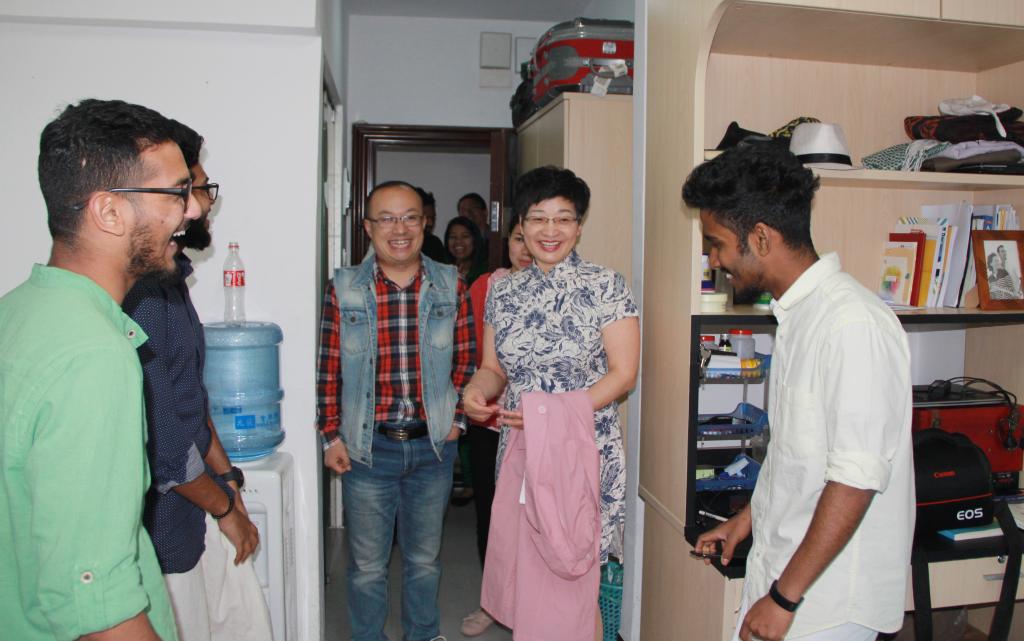 4月27日下午,医澳门六合彩-澳门六全彩开奖网 党政领导班子成员一行来到留学生公寓,深入走访医澳门六合彩-澳门六全彩开奖网 留学生宿舍,与留学生们进行面对面交流。医澳门六合彩-澳门六全彩开奖网 党政办、学工办相关负责老师陪同走访慰问。