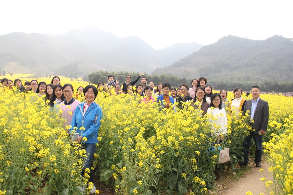 到天下第一桃园,沿桃园石阶而上,两旁皆是桃花,有的花色浓重,红艳欲滴;有的花瓣呈重瓣,更显丰腴之美;有的是含苞待放的花骨朵,远远望去如夜空的点点星辰,闪烁晶莹。大家游兴盎然,在桃花丛中合影留念,春天的阳光静静地洒在每个人脸上,好似一朵朵绽放的桃花。广大女教工纷纷表示,本次活动踏青赏花相得益彰,既有助于缓解紧张的工作压力,又增进了教职工之间的情感交流。是一项非常有意义的活动。