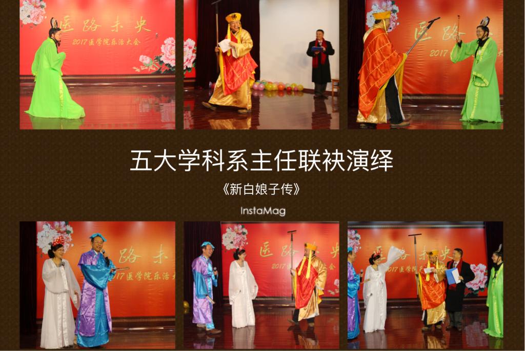 乐活大会以医澳门六合彩-澳门六全彩开奖网 分工会自制视频大片“医路未央”开场,以恢宏的气势,幽默诙谐的风格盘点了医澳门六合彩-澳门六全彩开奖网 的精彩而又忙碌的2016年,展示这一年“大家”的业绩、“小家”的变化,展现了全院师生在2016年抓住机遇,凝聚力量,在澳门六合彩-澳门六全彩开奖网 发展、校生命与健康学科群建设、医学中心建设、中港合作办学、中外合作建学科、岗位聘任、院党委和工会换届选举等各大事件中齐心协力、努力奋进的事件,同时又展现了全院教职工热爱生活,共建澳门六合彩-澳门六全彩开奖网 文化的风采,充满了浓浓的人文情怀。随后从院领导到各学科系、办公室各显神通,积极参与、展现才华为大家奉献出一个个高质量的欢乐大餐。全体院领导合演的小品《江南五大才子点如花》、各学科系主任合演的小品《爆笑新白娘子传奇》都是作品原创、笑料十足,院领导们和教授们以搞研究的态度搞笑,大大展示了幽默诙谐风采。各学科系展示的节目从舞蹈《真的没骗你》、《梦回汉唐》的华丽优美,到健身舞《向快乐出发》、《奔放的脚步》的活力四射,到语言类节目《我们的家》、《走在二胎的大道上》的欢乐风趣;加上摩登的澳门六合彩-澳门六全彩开奖网 新人秀,等无不结合了时下最流行的元素、最潮的语言和医澳门六合彩-澳门六全彩开奖网 的专业特色,聚集了大量教职工尽情地表演和参与,上下互动热烈,节目精彩纷呈,体现了医澳门六合彩-澳门六全彩开奖网 教职工劳逸结合、释放压力、凝心聚力、迎接挑战的精神风貌。此外,活动中还穿插了《我们都是木头人》、《神同步》等时尚而又有挑战的游戏,现场教职工参与热情高,现场一片欢声笑语,其乐融融。