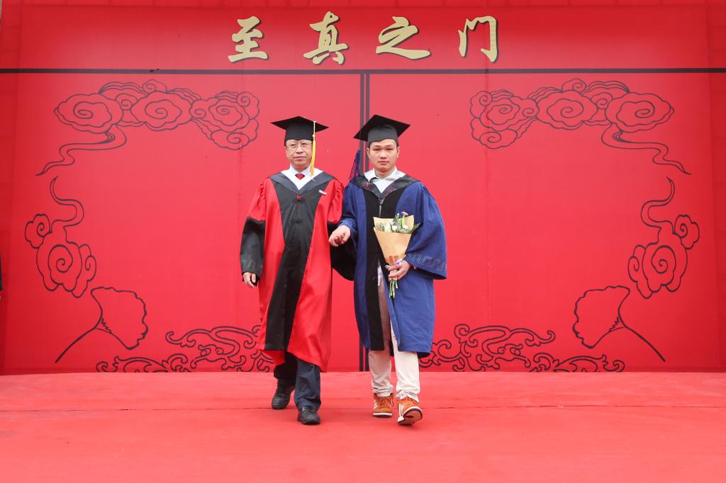 在学子出师交接仪式环节,毕业生代表在导师们的引领下,伴随着厚重隽永的音乐,昂首走出至真之门,迈向美好未来。导师将毕业生的手交到医院老师和家长代表的手中,象征着医学生学成毕业、走向社会的交接和传承,也预示着毕业生将勇敢承担起家庭、事业和社会的责任,学以致用,感恩父母,回馈社会。在庄重、感人的氛围中,毕业生们向医院老师和家长代表献上鲜花。整个环节令全体师生油然而生神圣感、自豪感,也使不少学生和家长感动得数度落泪。