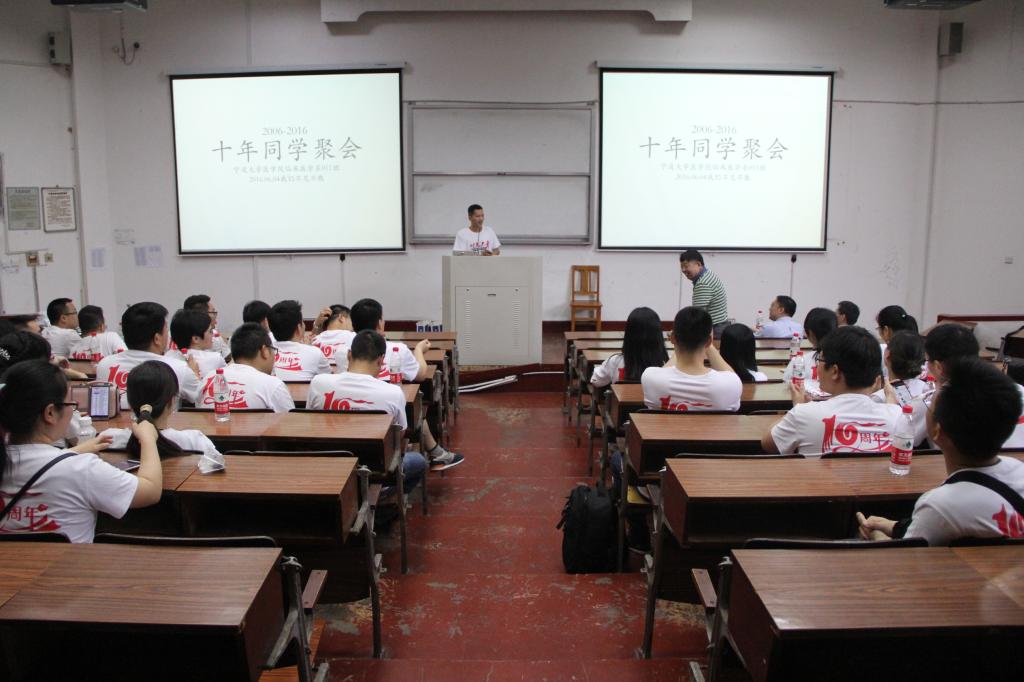 校友们兴奋地穿上十周年纪念衫,开了一堂重新相互认识的班会,流连于南天门、大草坪、白鹭林、至真楼等熟悉的宁大景观,一起合影留念,交流分享,欢声笑语弥漫整个校园。
