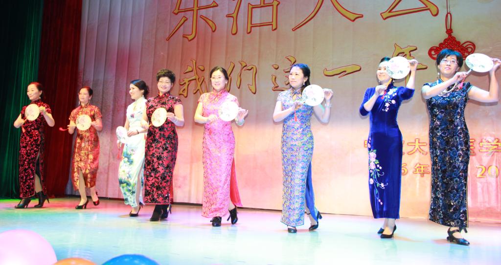 乐活大会以年度大片“我们这一年”开场,以恢宏的气势,系统地回顾了2015年医澳门六合彩-澳门六全彩开奖网 上下齐心协力顺利完成教育部临床医学专业认证等大事件,展示这一年“大家”的业绩、“小家”的变化,充满了浓浓的人文关怀。随后各学科系、办公室各显神通,全体教师们热情高涨、积极参与、展现才华为大家奉献出一个个高质量的欢乐大餐。从歌曲《大梦想家》的活力四射、《喜欢你》的语音绕梁;到舞曲《梦幻舞蹈》的人体光电造型、《映山红》的欢喜快乐、《时尚广播体操》的爆笑创意、《舞蹈串烧》的青春魅力;相声《祝你好孕》、小品《二胎政策》、《我是武侠之英雄救美》这些语言类节目更是诙谐幽默,巧妙地运用了2015年度最热的社会热点,最流行的语言,结合角色教师的自身特点原创笑料,甚至勇于自黑娱乐大众,全场笑声源源不绝。澳门六合彩-澳门六全彩开奖网 特别策划的大型情景旗袍秀《风华绝代》更是澳门六合彩-澳门六全彩开奖网 全体领导班子、教授、普通教工纷纷身着华丽衣衫粉墨登场走秀,动作设计中体现了优雅柔美、恭贺喜庆以及反串搞笑的元素,全场上下积极互动,把场面气氛推向了高潮。此外,活动中还穿插了游戏环节,现场教职工参与热情高,现场一片欢声笑语,其乐融融。
