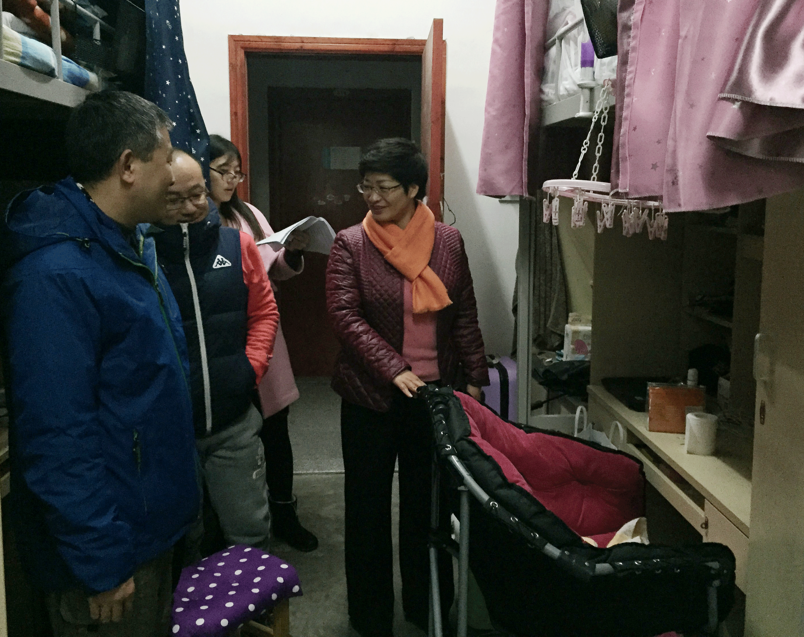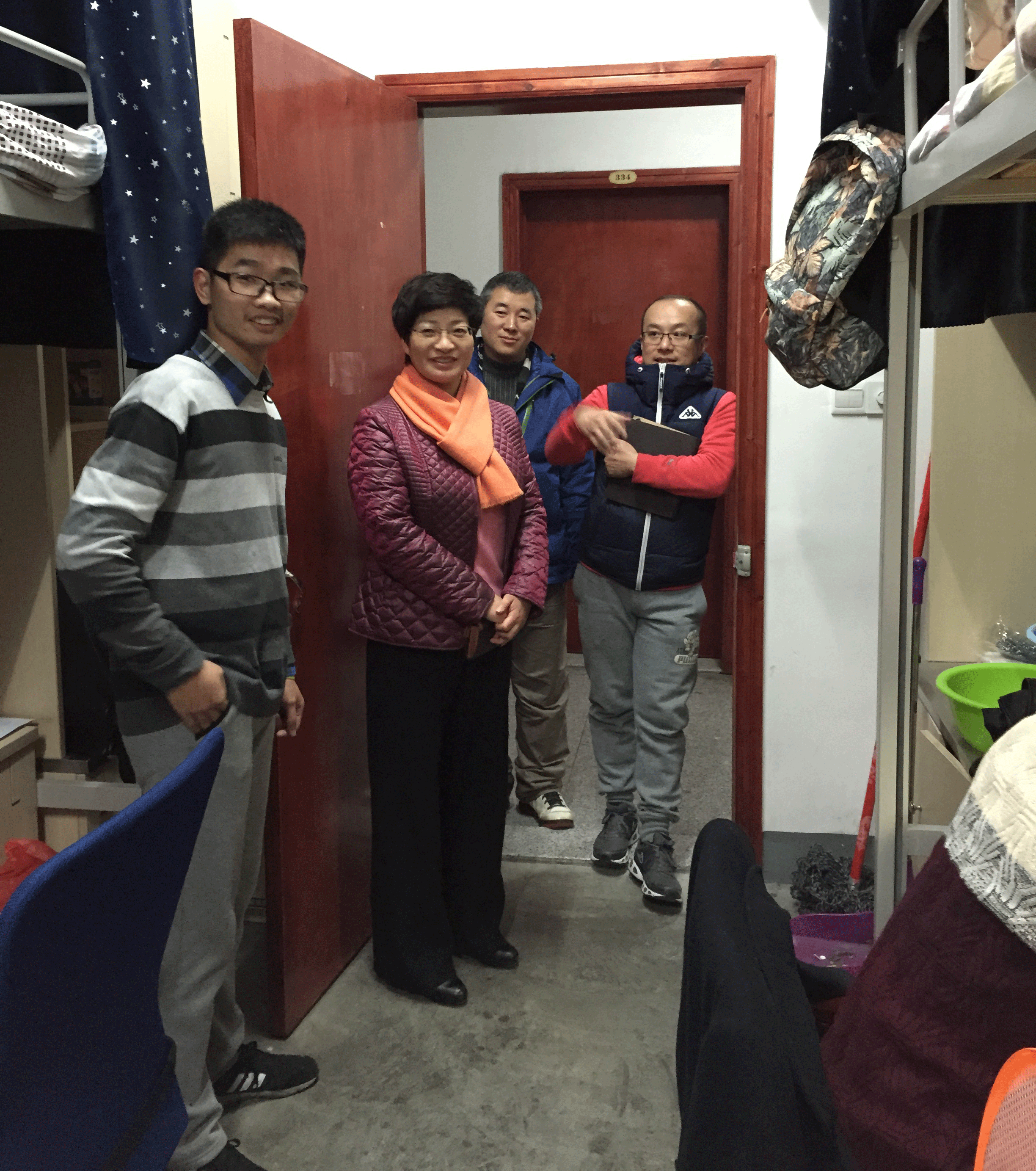 2016年1月6日下午,正值小寒时节,医澳门六合彩-澳门六全彩开奖网 党委书记骆巧凤老师、副书记于瑾滔老师带领学工办辅导员先后到本部宿舍、甬江公寓进行寝室安全文明卫生实地走访,给同学们送去了关怀和问候。