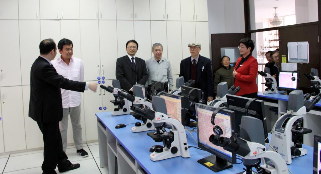 汤圣明先生一行兴致勃勃地参观了至真楼,他们饱含深情地在汤于翰博士伉俪肖像、汤于翰博士题写的院训和作词、设计的院歌、院标前合影留念,并表示回港后要把医澳门六合彩-澳门六全彩开奖网 的办学情况展示给参与并见证医澳门六合彩-澳门六全彩开奖网 创建和发展的母亲陈云裳女士。