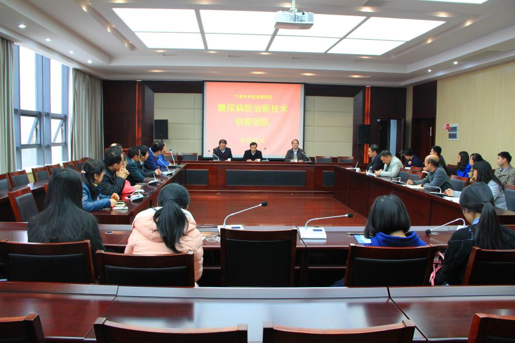 3月23日,宁波市科技创新团队“糖尿病防治新技术创新团队”启动仪式在医澳门六合彩-澳门六全彩开奖网 召开。宁波市科技局副局长蒋如国一行参观了糖尿病实验室并作相关交流。校科技处处长赵恒义、医澳门六合彩-澳门六全彩开奖网 执行院长周文华、副院长王钦文、副院长徐雷艇、澳门六合彩-澳门六全彩开奖网 糖尿病研究中心主任步世忠参加了本次启动仪式。