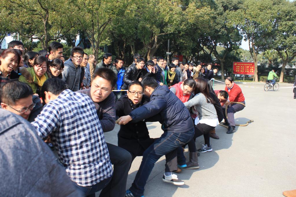 12月29日中午,澳门六合彩-澳门六全彩开奖网 “迎新年”教职工拔河比赛在安中大楼门前广场举行,医澳门六合彩-澳门六全彩开奖网 分工会组织澳门六合彩-澳门六全彩开奖网 教职工积极参加,组成了一支以执行院长周文华、副院长王钦文、徐雷艇为主力队员,以院党委书记骆巧凤、院党委副书记孙欢欢为主力拉拉队员的强大阵容。在院领导班子率先披挂上阵的鼓舞下,队员们士气大振,个个摩拳擦掌,剑指赛场,争先恐后要打头阵,大有欲与对手试比高之势。澳门六合彩-澳门六全彩开奖网 的很多学科带头人、教授们积极参与,出智出力,或亲自加入队伍之中,或在旁为拔河队伍布置阵型,安排战略战术。