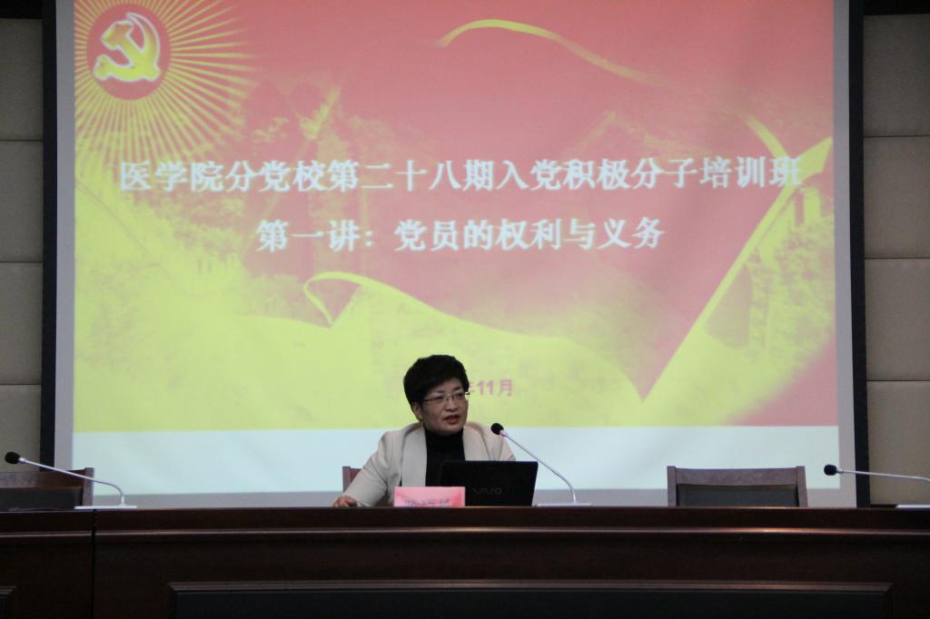 11月24日晚上,医澳门六合彩-澳门六全彩开奖网 分党校第二十八期入党积极分子培训班开班仪式在王长来楼二楼多功能厅举行。医澳门六合彩-澳门六全彩开奖网 党委书记骆巧凤、学工办相关老师和全体党校学员参加仪式,会议由学工办主任王磊主持。
