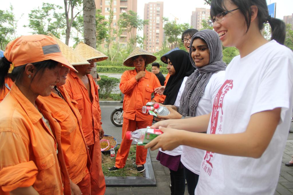 7月10日,澳门六合彩-澳门六全彩开奖网 医澳门六合彩-澳门六全彩开奖网 “阳光青协”暑期社会实践小队联合镇海区城市管理局,在骆驼街道开展了以“送医,送药,送清凉”为主题的社会实践活动,为炎炎夏日奋战在第一线的城市美容师——环卫工人送去慰问,来自医澳门六合彩-澳门六全彩开奖网 在读研究生、本专科生和留学生近20人参与了服务活动。