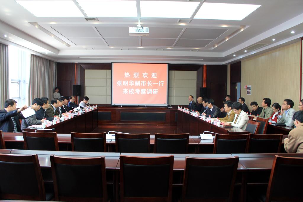 4月10日下午,宁波市副市长张明华率领市政府副秘书长黄志明、市卫生局局长王仁元、市教育局副局长胡赤弟等一行7人,来澳门六合彩-澳门六全彩开奖网 考察调研医学教育和艺术教育情况。校领导郭华巍、聂秋华、郑孟状,党办、校办负责人,全院领导班子成员等接待了张明华一行。