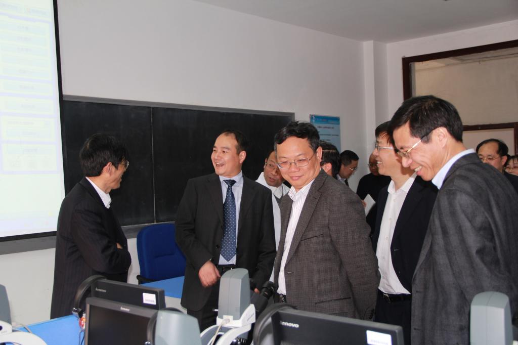 张明华一行首先参观了医澳门六合彩-澳门六全彩开奖网 显微数码互动教室、分子病理学研究室、解剖学与组织胚胎学实验室、神经生物学研究实验室、糖尿病研究室、卫生毒理学实验室等,随后澳门六合彩-澳门六全彩开奖网 在王长来楼多功能厅举行了座谈会,座谈会由校长聂秋华主持。