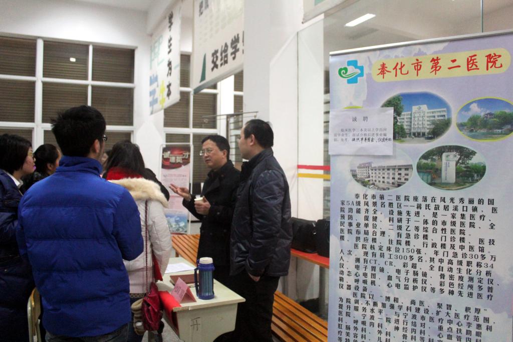 1月8日,医澳门六合彩-澳门六全彩开奖网 在黄庆苗楼一楼就业市场大厅举办澳门六合彩-澳门六全彩开奖网 2014届医学类毕业生专场招聘会。本次招聘会邀请了来自江东、江北、鄞州、镇海以及宁海、奉化、象山、台州、上海等宁波市周边及省外的33家医疗卫生单位前来参加,为澳门六合彩-澳门六全彩开奖网 医学类毕业生提供300多个临床医学专业相关岗位,参会单位数量与提供岗位数量均创下历年来专场招聘会之最。招聘岗位以临床医学专业为主,同时也包括麻醉、影像、放射、超声、检验、心电、病理、预防医学等专业。