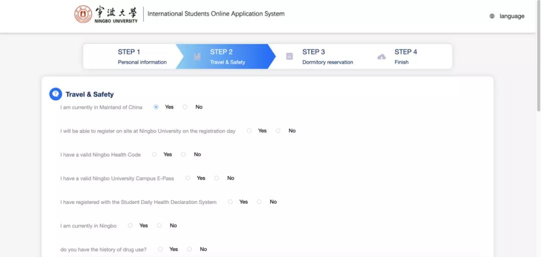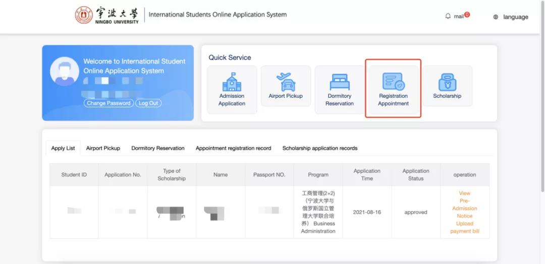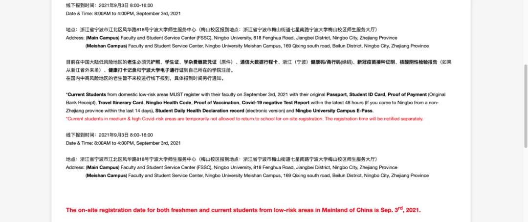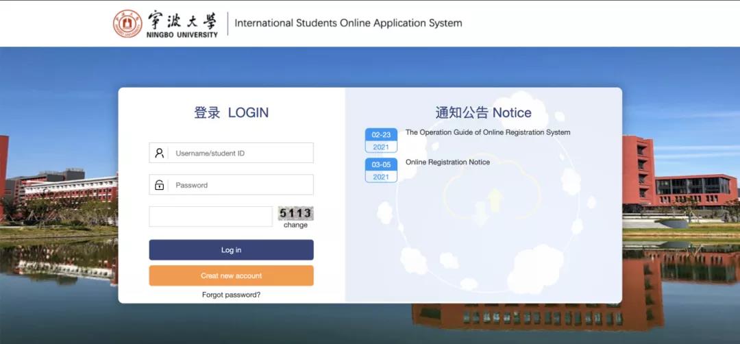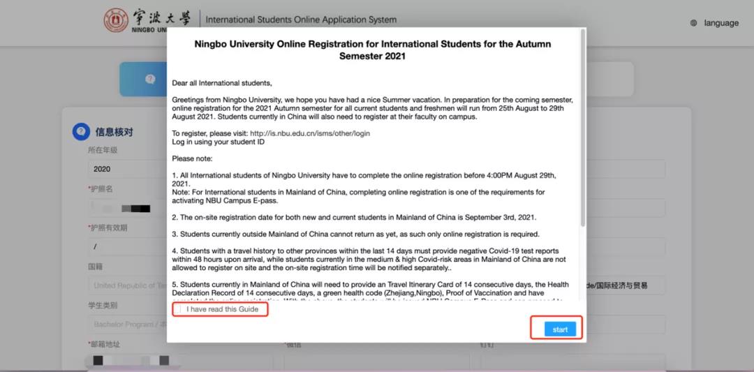 The Operation Guide of Online Registration System for International Students of Ningbo University in the Fall Semester of 2021