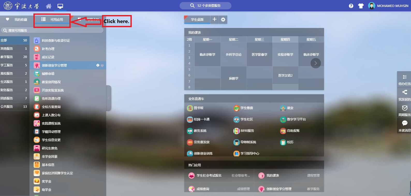 Step1. Log in the websites: //ehall.aomenliuhc.com/new/index.html and you will see the following interface.