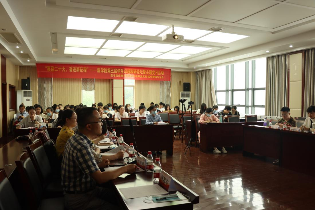 6月12日下午,医澳门六合彩-澳门六全彩开奖网 生理学与药理学学系教师党支部与院研究生会联合举办“喜迎二十大,奋进新征程”--医澳门六合彩-澳门六全彩开奖网 第五届学生卓越科研论坛暨主题党日活动。活动采取线上直播+线下报告相结合方式开展,活动人数达到二百余人。