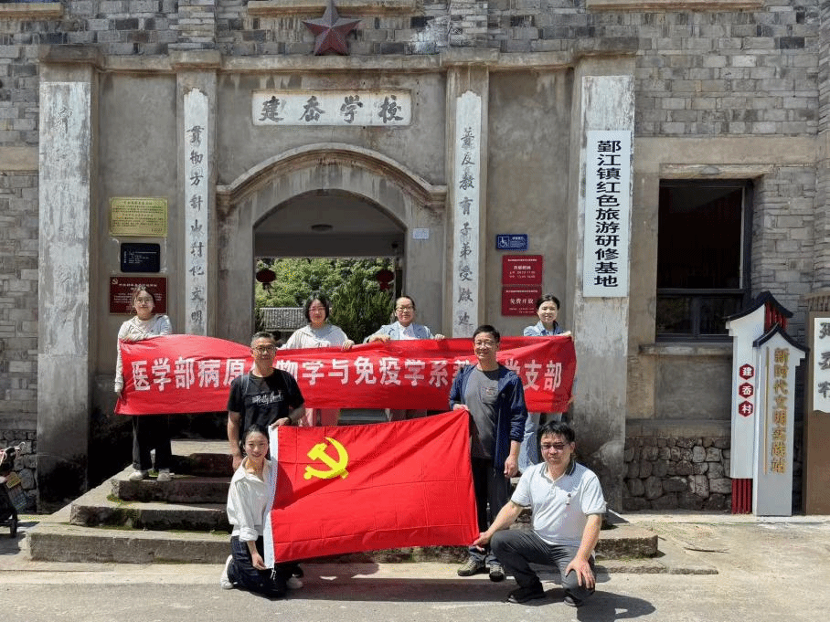 5月10日,医学部病原生物学与免疫学系教师党支部联合形态学系教师党支部,组织党员走进宁波市鄞州区建岙村红色革命基地,开展"建岙红色行,医路见初心"党建联建活动。党员们在革命历史现场触摸峥嵘岁月,在红色精神的洗礼中凝聚奋进力量,感悟新时代医学教育工作者的使命担当。