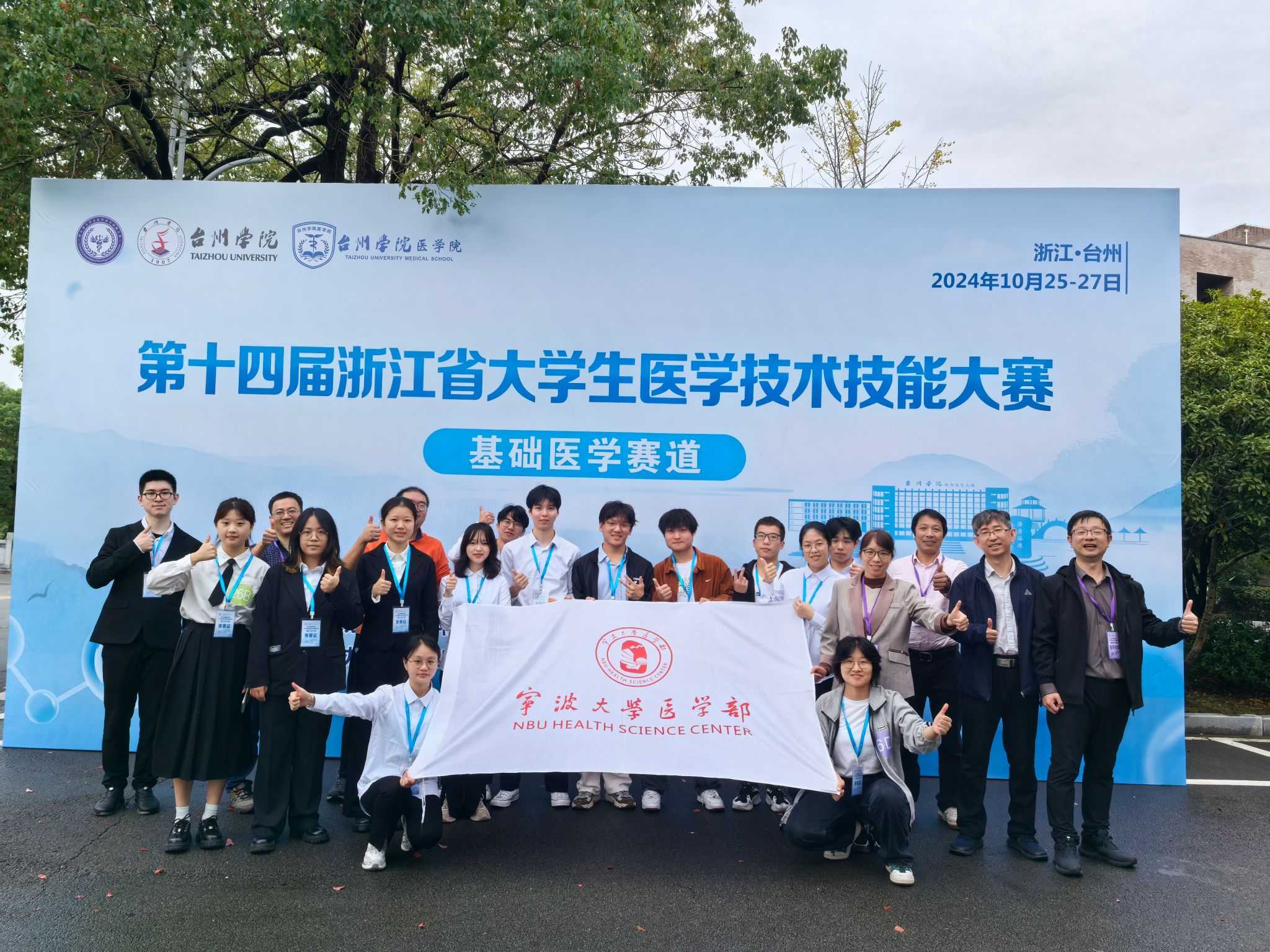 On October 26th, the 14th Zhejiang Provincial College Students' Medical Technology and Skills Competition in Basic Medical Sciences concluded at Taizhou College. The competition saw participation from over 160 medical students across 33 teams representing 10 universities in the province. Ningbo University Health Science Center, guided by teachers Mei Dixson and Li Liping, Jin Xiaofeng and Ye Meng, Chen Yiyong and Lin Rong, fielded three teams which achieved impressive results with one silver and two bronze medals.