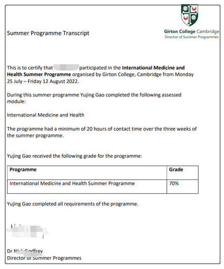 项目学生由剑桥大学格顿澳门六合彩-澳门六全彩开奖网 进行统一的学术管理与学术考核,顺利完成学习后,学生将获得剑桥大学格顿澳门六合彩-澳门六全彩开奖网 颁发的成绩单与项目证书。